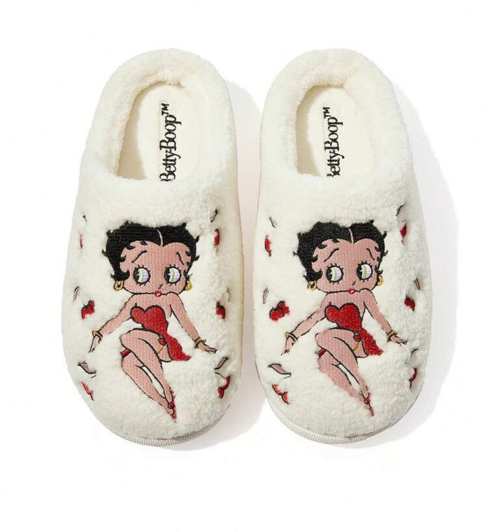 دمپایی خانگی زنانه Betty Boop x SHEIN مدل Cartoon Portrait Embroidered