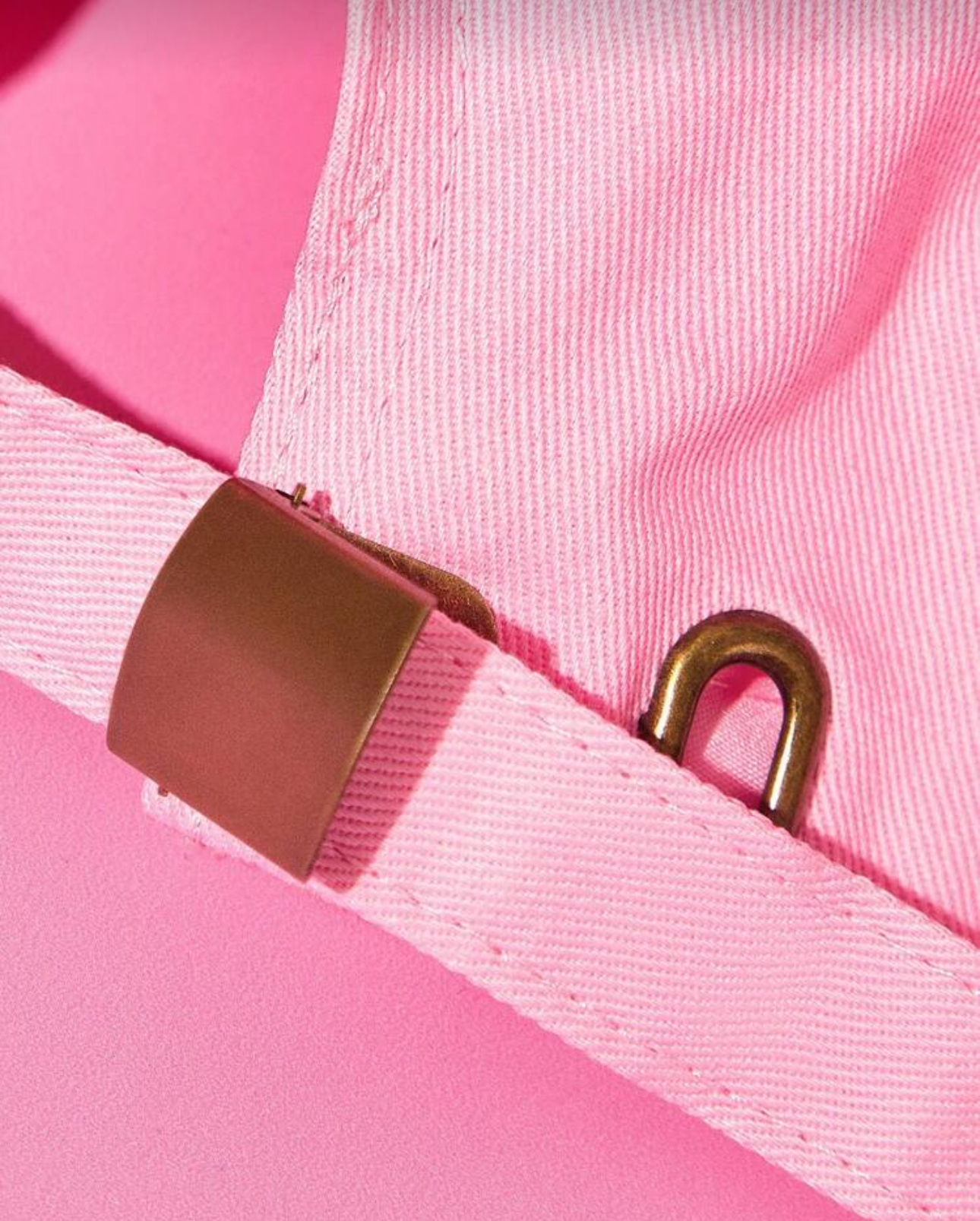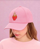 - کلاه بیسبالی (Duckbill Cap) در رنگ صورتی ملایم با طرح توتفرنگی بامزه