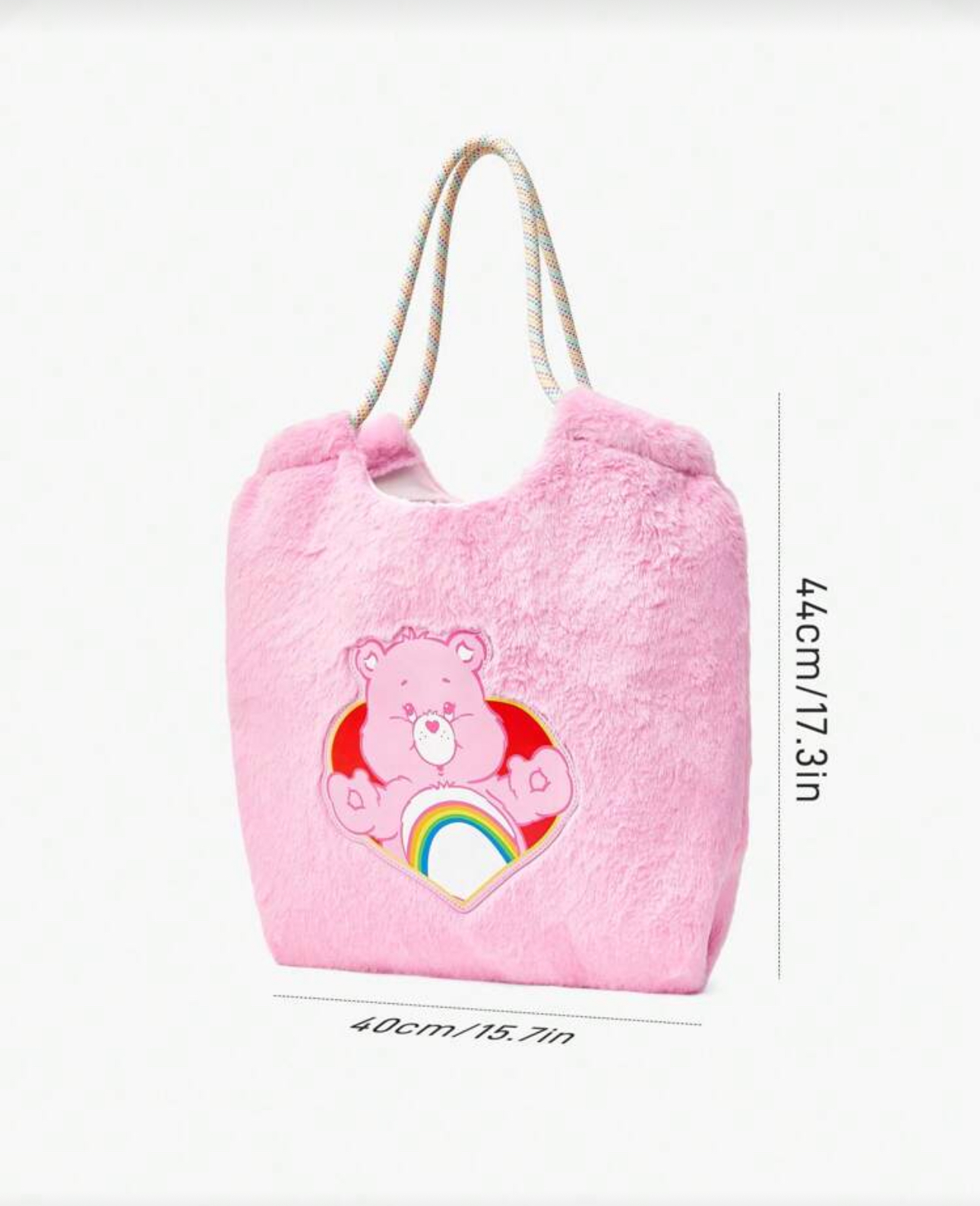Care Bears 1pc Pink Plush Tote Bag With Cute Bear Patch