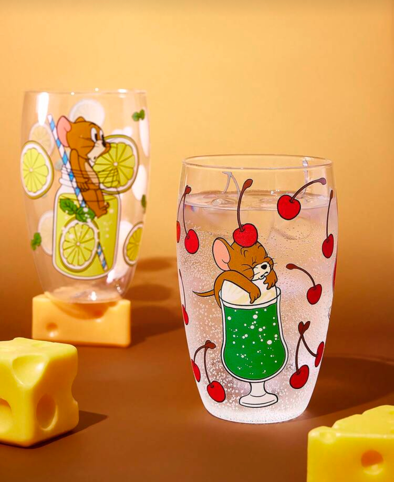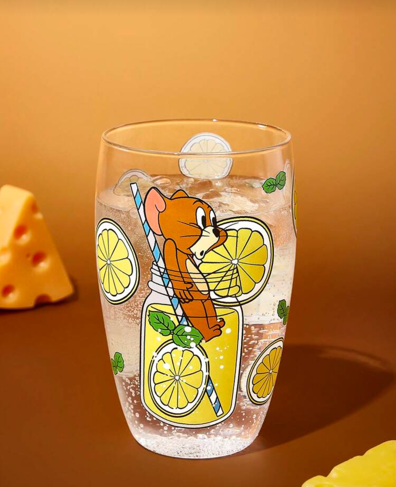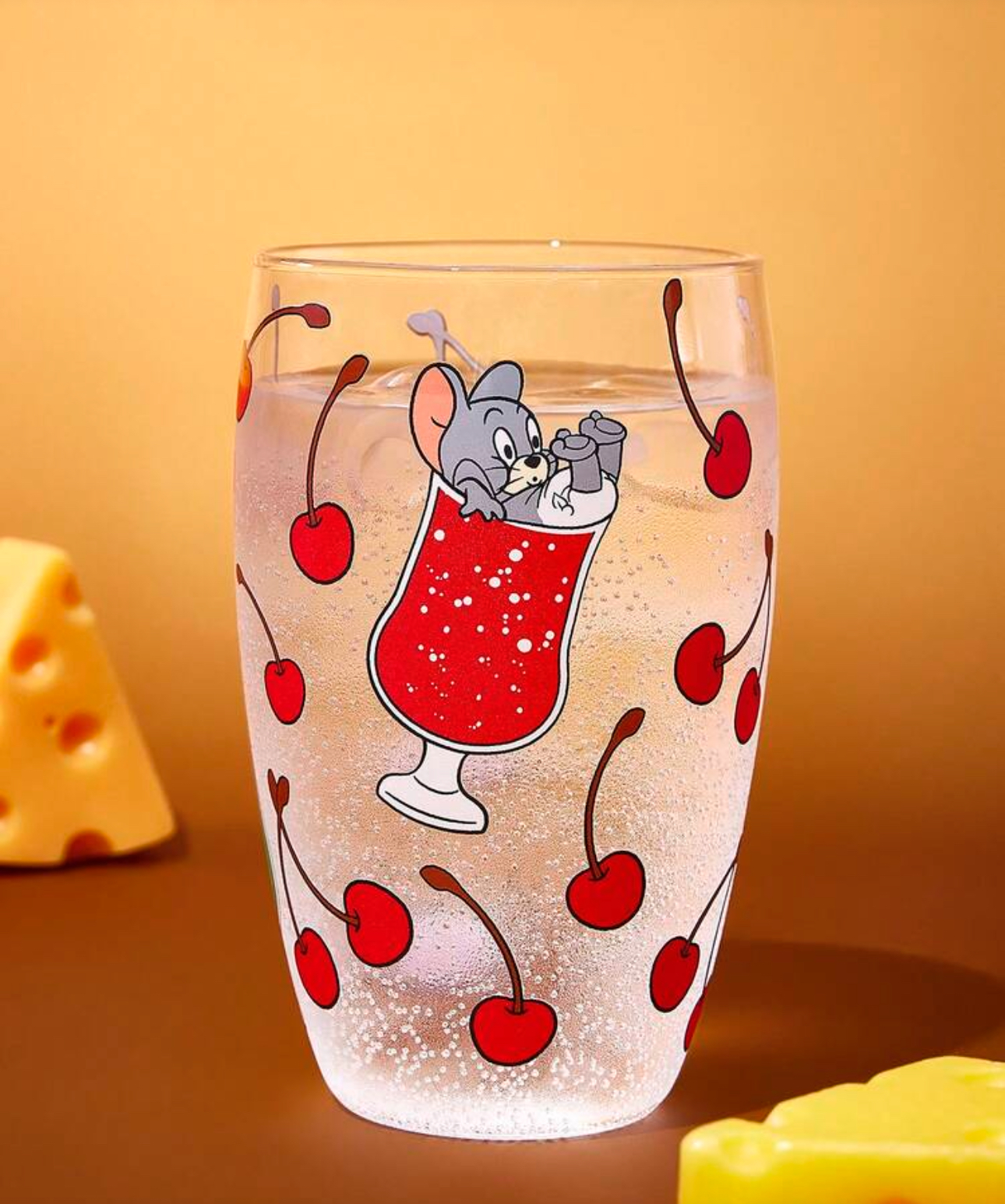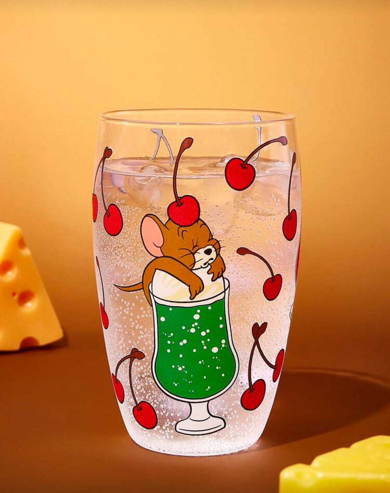 - مدل: ماگ شیشهای طرح کارتونی با چاپ رنگی شخصیت جری، لیمو و گیلاس