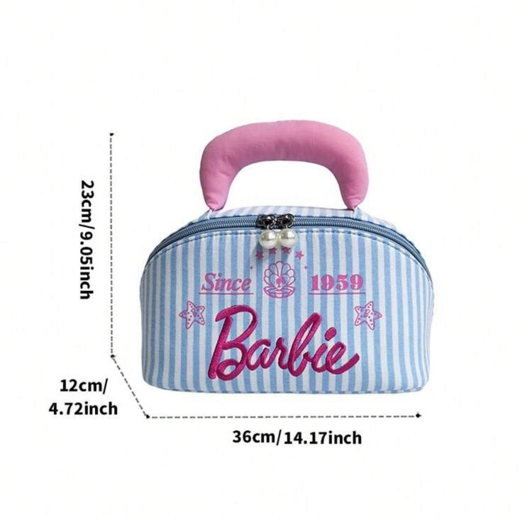 - کاربرد: کیف آرایش روزمره یا سفر، هدیهای خاص برای دوستداران Barbie