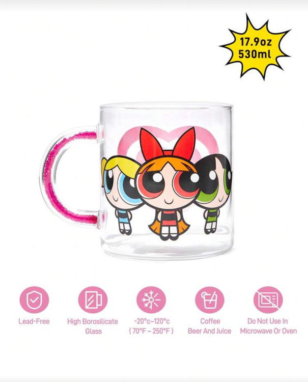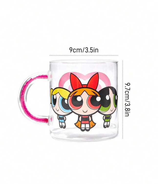 ماگ شیشهای پاورپاف گرلز × SHEIN مدل براق 520 میل (The Powerpuff Girls X SHEIN Borosilicate Glass Mug)