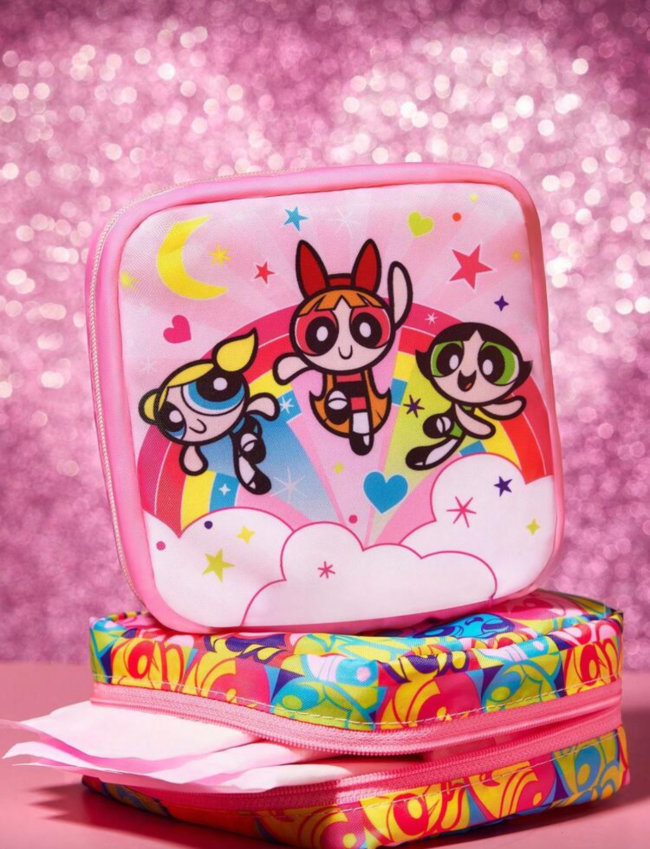 ست کیسههایی فانتزی و کاربردی با طراحی شاد پاورپاف گرلز — ترکیبی از نظم، لطافت و استایل کارتونی