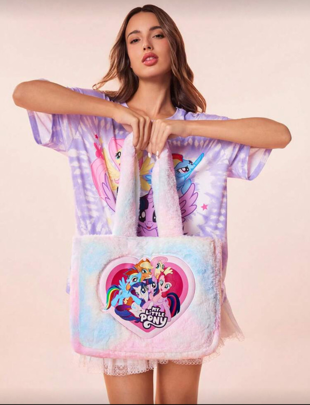 نام محصول: کیف دستی بزرگ و قابل حمل My Little Pony × SHEIN با چاپ کارتونی و طرح تایدایی