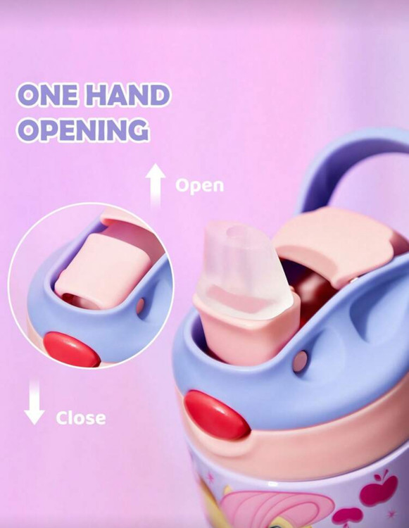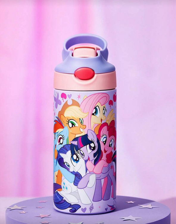 نام محصول: قمقمه استیل ۵۰۰ میلیلیتری My Little Pony × SHEIN با نی و درب ضد نشت