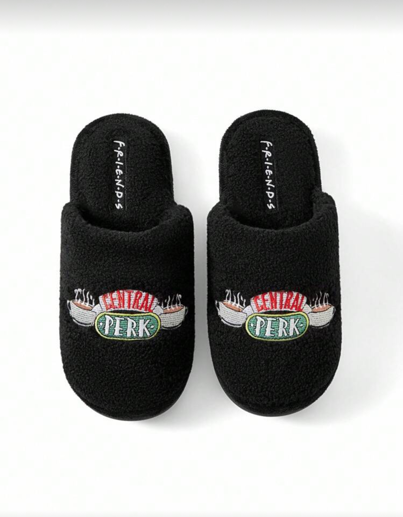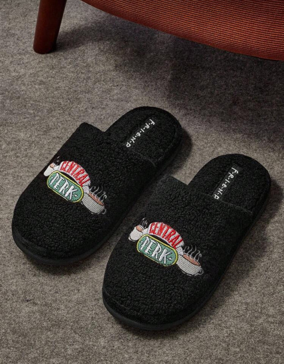 FRIENDS X SHEIN Central Perk Coffee Cup Embroidered Plush Women's Slippers