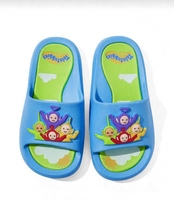 Teletubbies X SHEIN Cute Cartoon Blue&Green Kids Children's Slip-On Slippers Toddlers