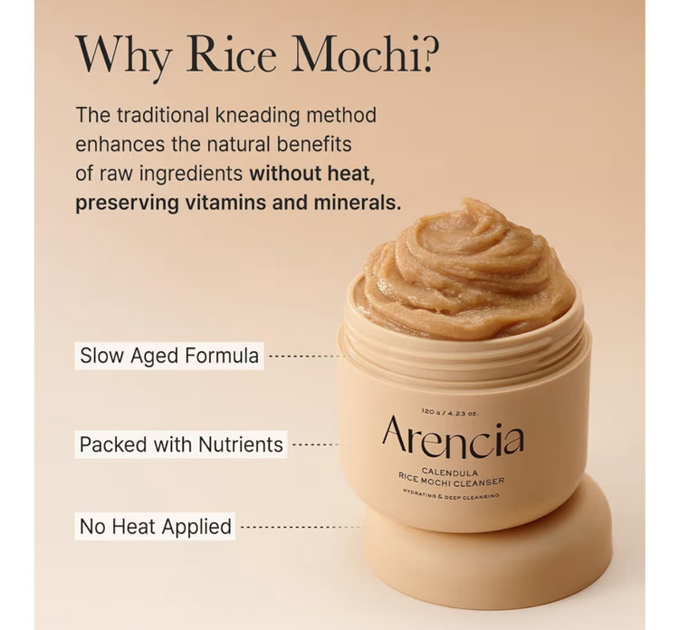 Arencia Calendula Rice Mochi Fresh Cleanser – فوم شستشوی صورت مرطوبکننده، روشنکننده و پاکسازی عمیق