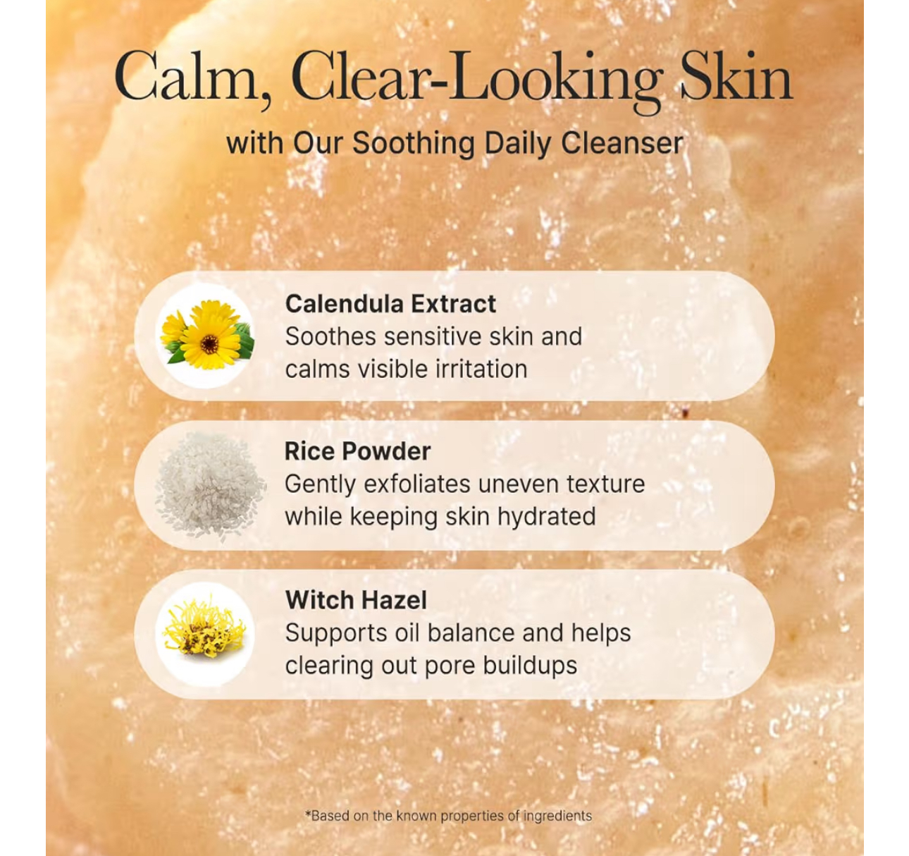 - Calendula Extract (عصاره گل همیشه بهار) برای آرامش، ضد التهاب و محافظت پوست