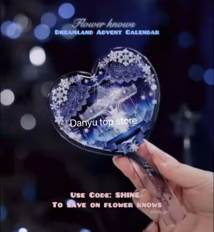 - آینه دستی بزرگ به شکل قلب با طراحی زمستانی درخشان و یونیک