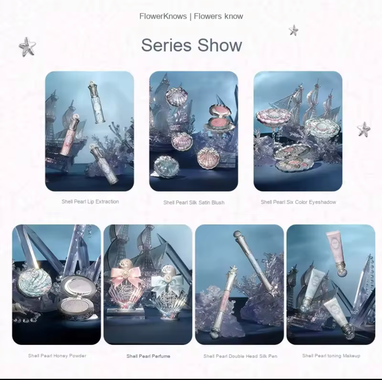 (ست کامل آرایشی با جعبه هدیه تم مروارید و صدف)