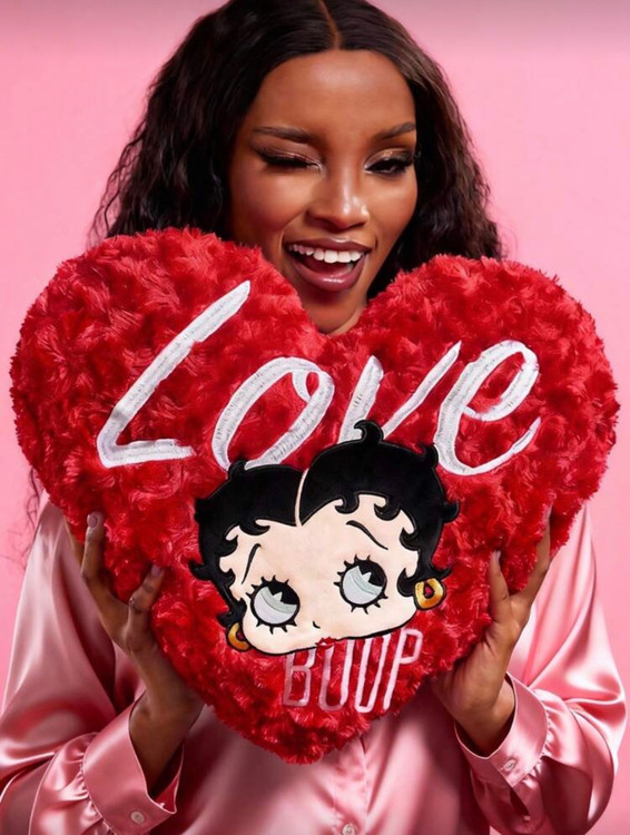 مشخصات کوسن قلبی Betty Boop x SHEIN (رز مخملی گلدوزیشده)