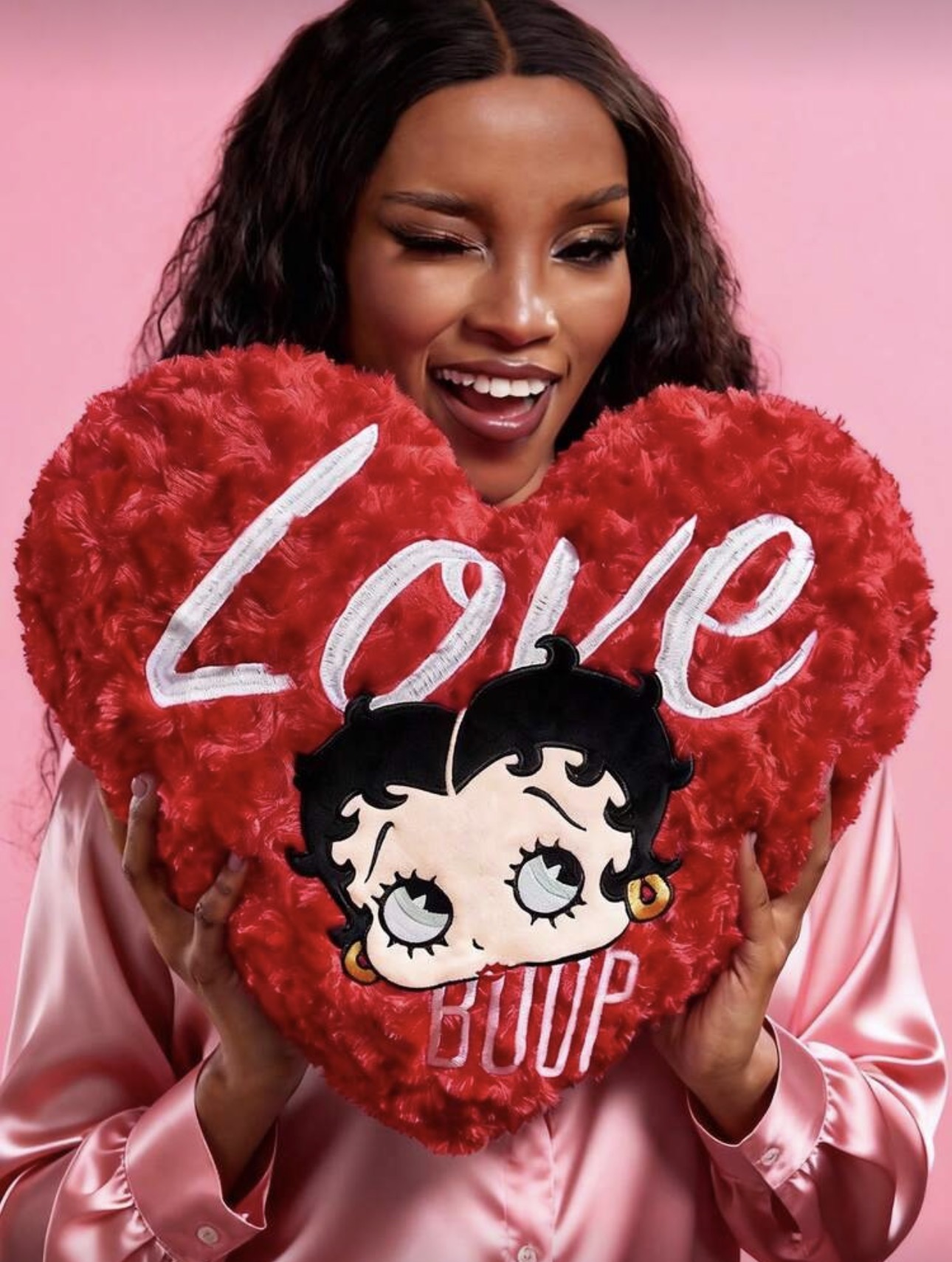 مشخصات کوسن قلبی Betty Boop x SHEIN (رز مخملی گلدوزیشده)