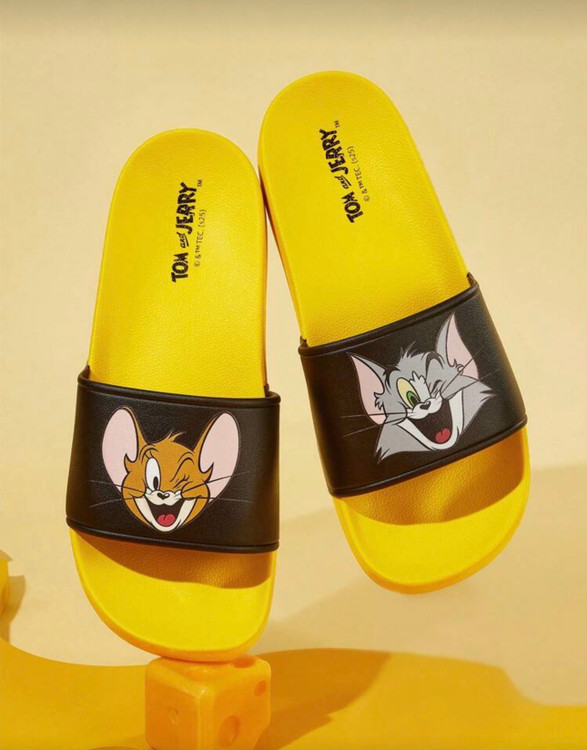 TOM & JERRY X SHEIN PVC Plastic Slipper With Cute Cartoon Cat & Mouse Design