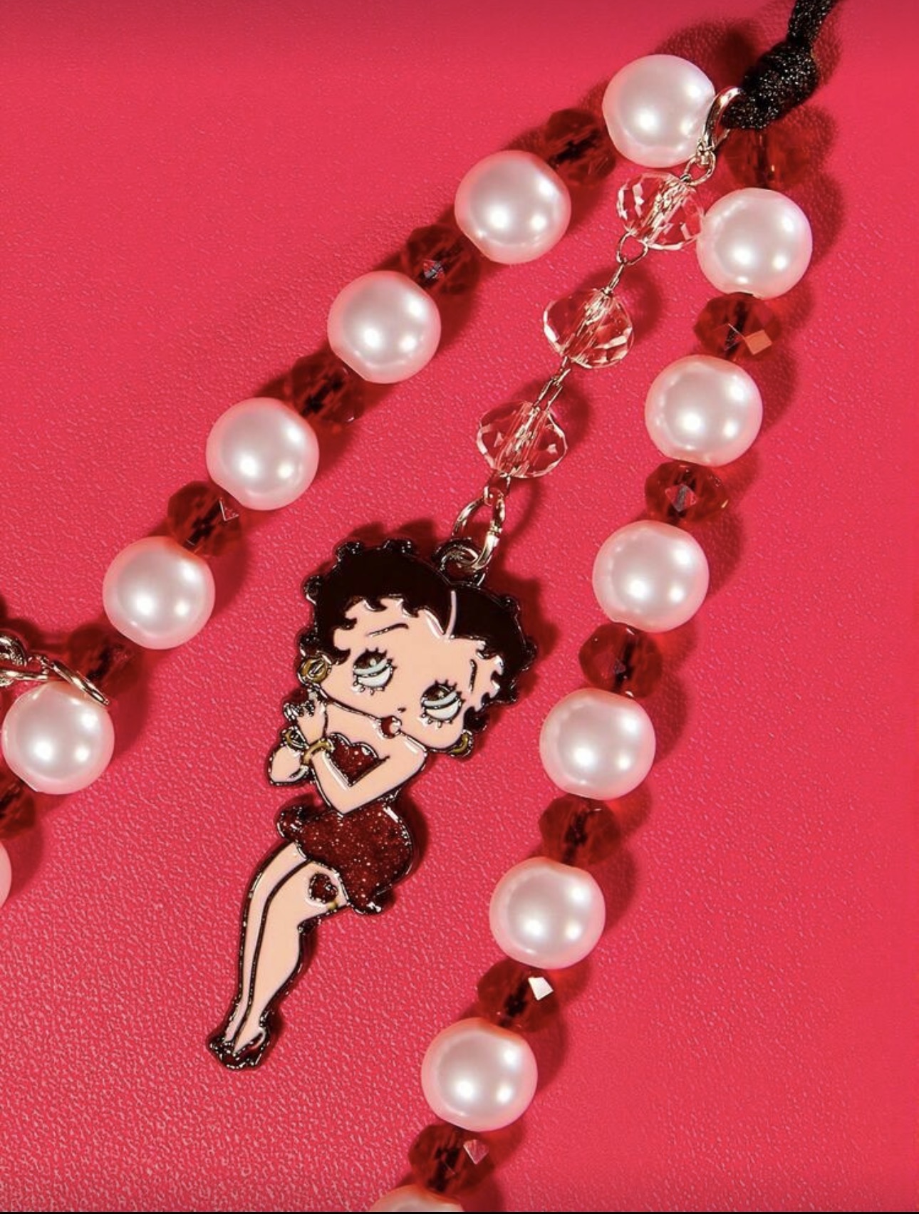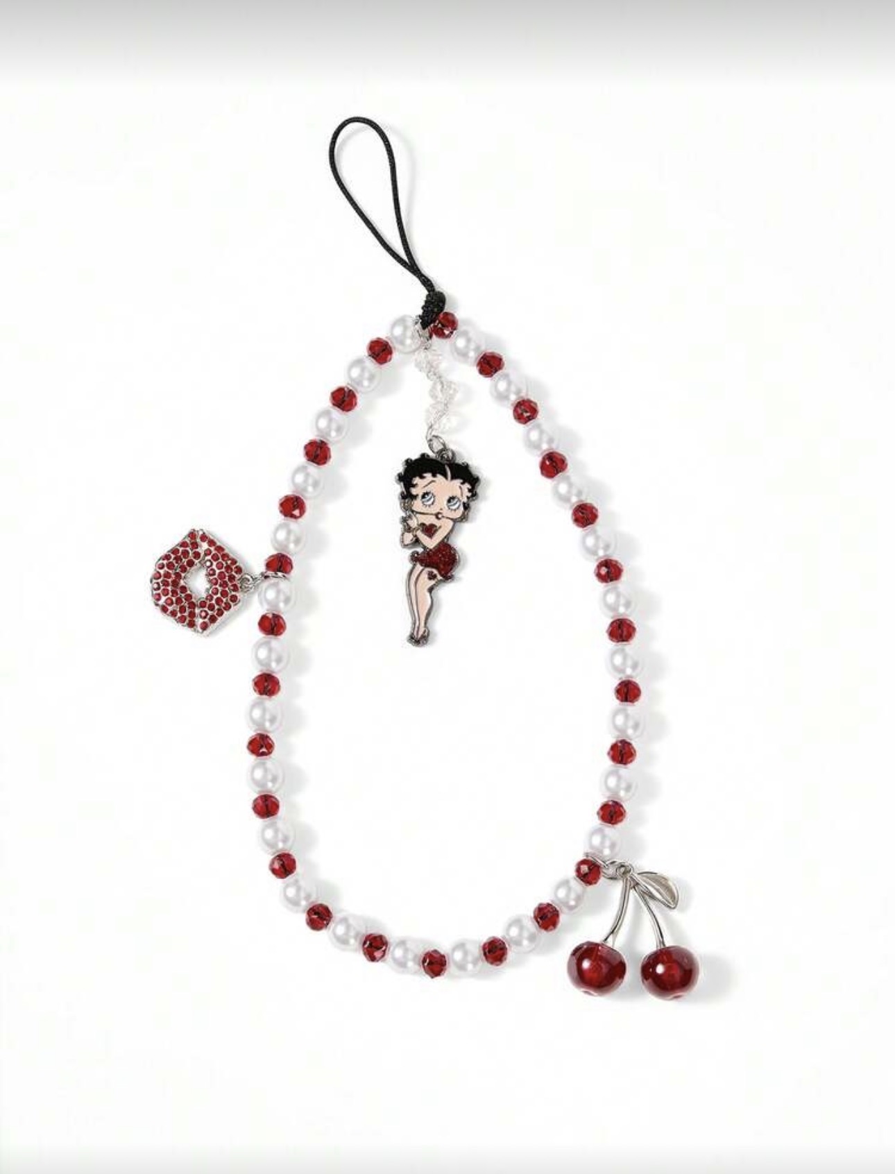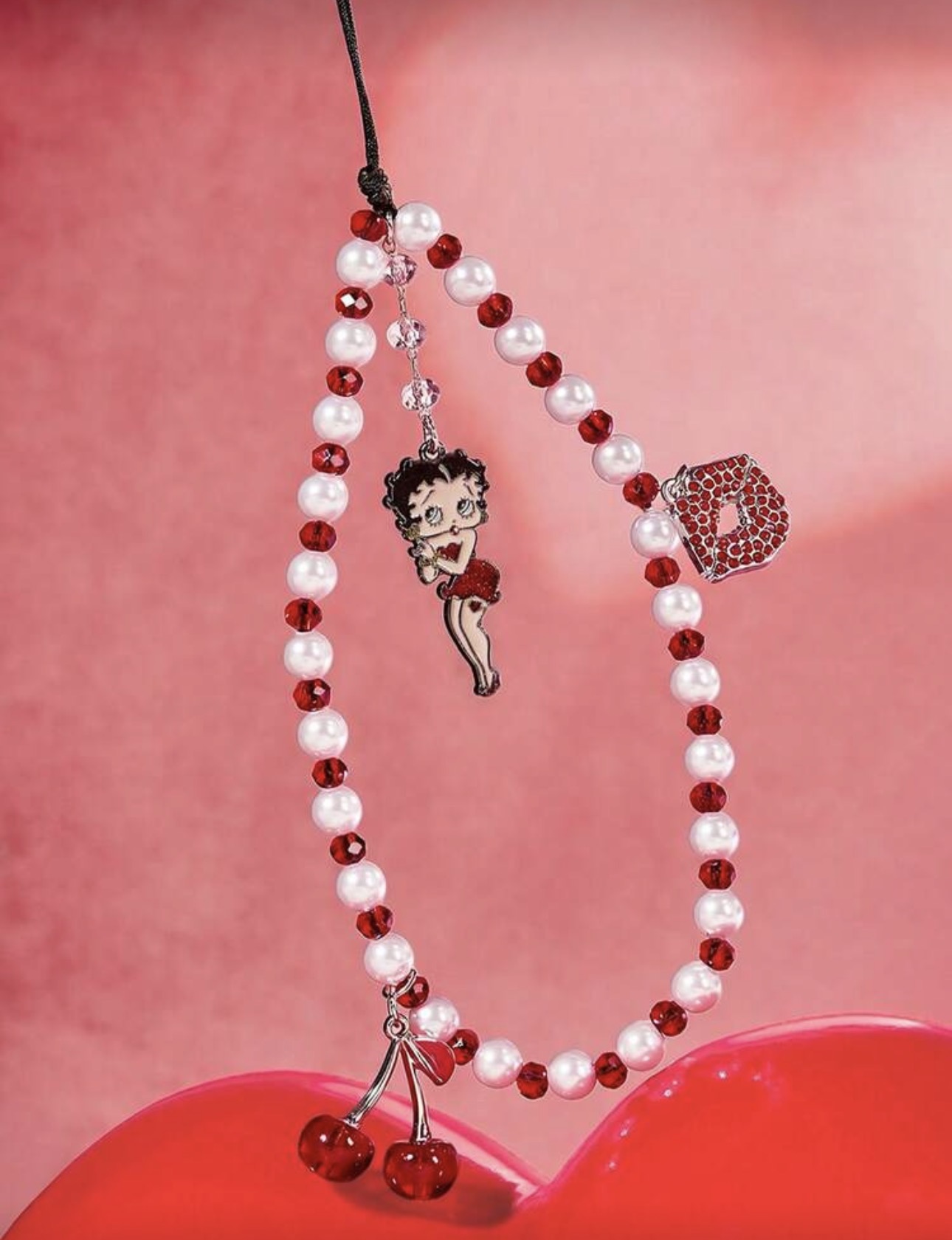 بند و آویز موبایل Betty Boop x SHEIN (مهرهدوزی دستساز)