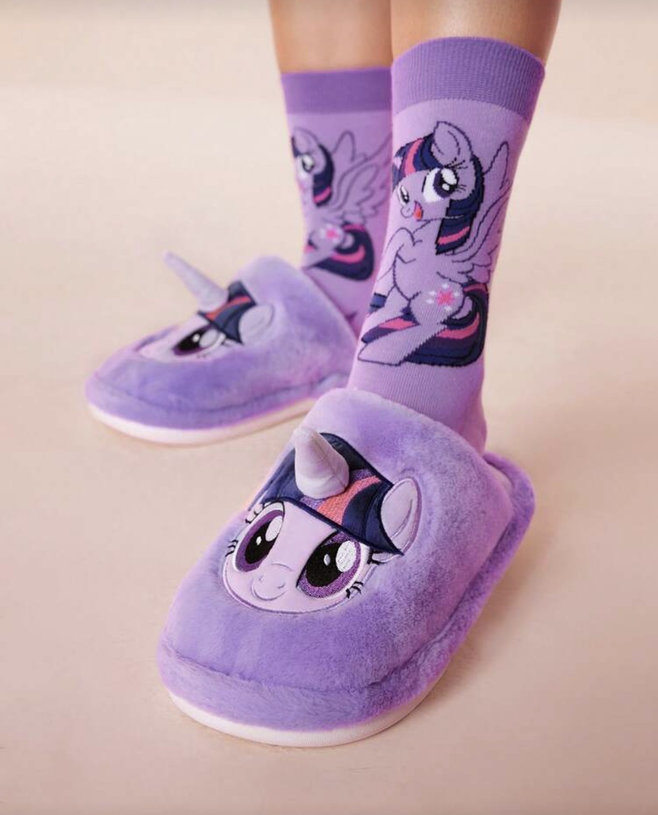 نام محصول: اسلیپر زنانه خانگی My Little Pony X SHEIN مشخصات: طرح یونیکورن گلدوزیشده فانتزی گرم و نرم، مناسب پاییز و زمستان مناسب استفاده داخل خانه جنس پشمی/پلاشی راحت انتخابی مناسب برای هدیه