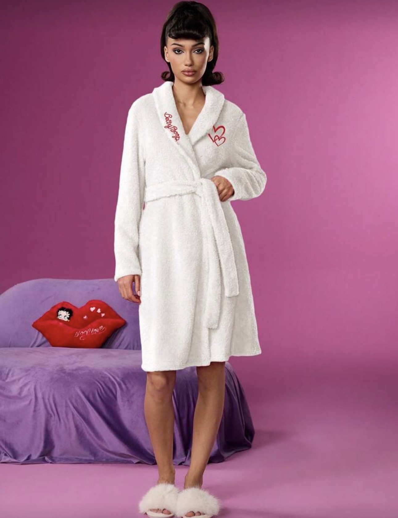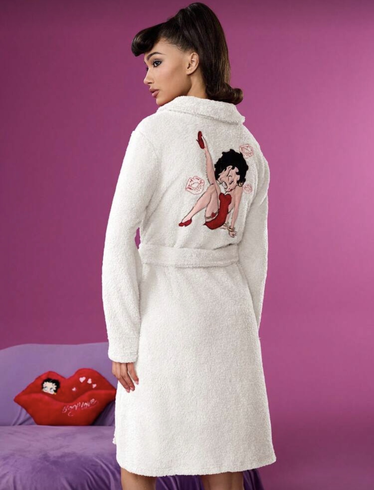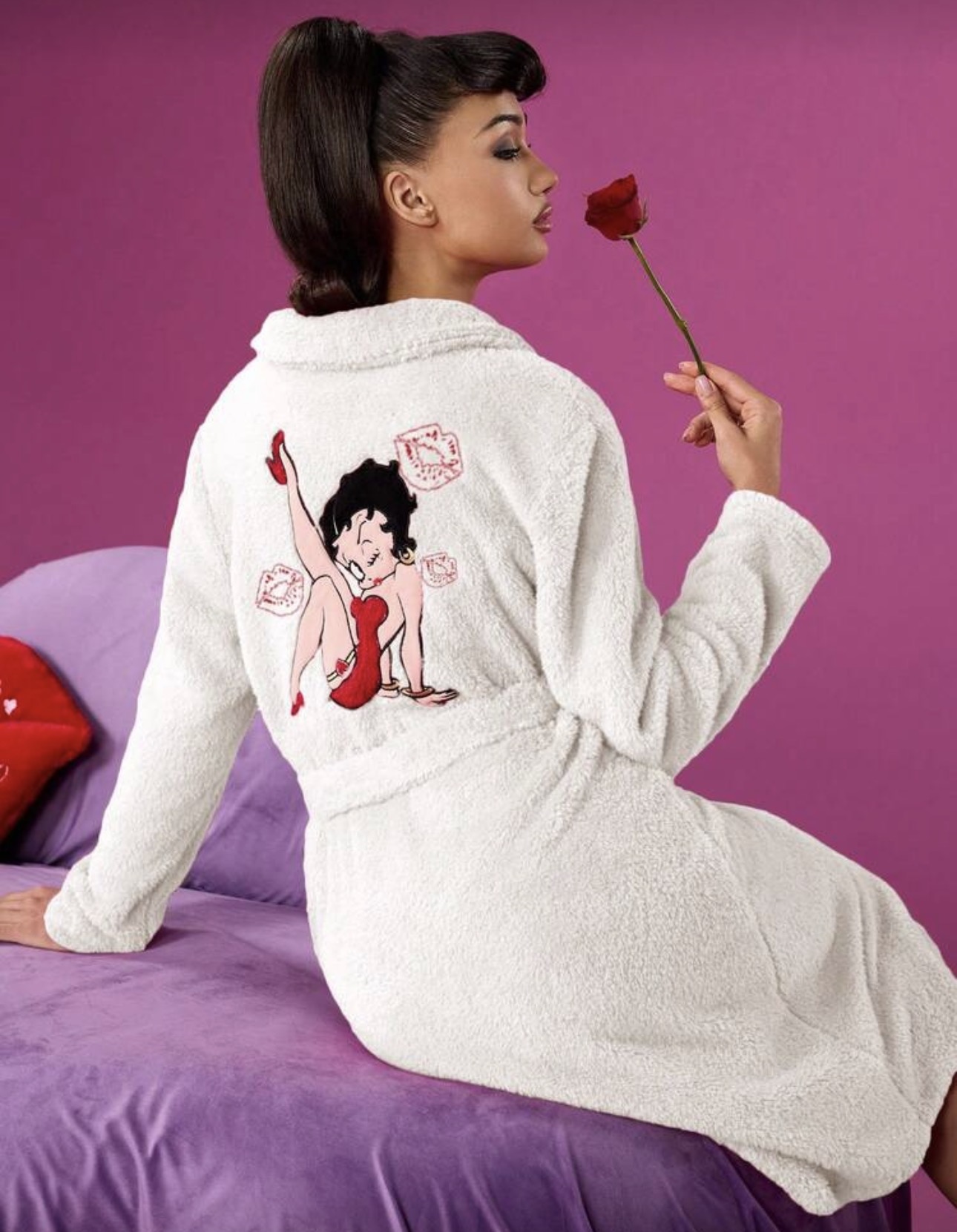 حوله تنپوش زنانه Betty Boop x SHEIN جنس: فلیس نرم و گرم مناسب فصل: پاییز و زمستان طرح: گلدوزی بتـی بوپ، فانتزی و دخترانه کاربرد: بعد از حمام، استفاده خانگی ویژگیها: سبک، لطیف، گرم، راحت مناسب هدیه و استفاده روزمره