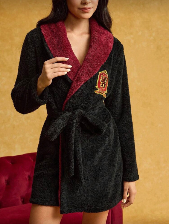 HARRY POTTER X SHEIN Women's Crossover Wrap Colorblock Embroidered Tie Waist Long Sleeve