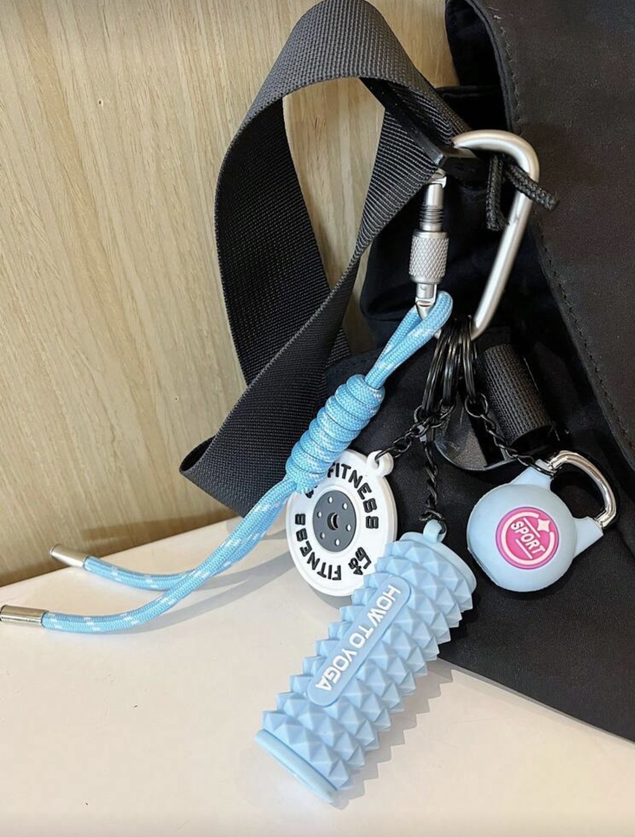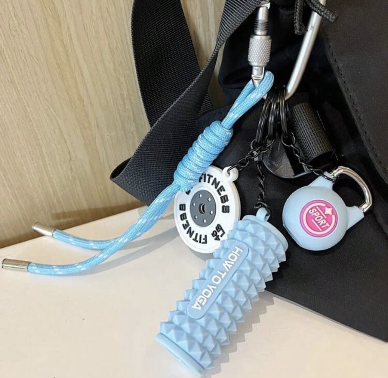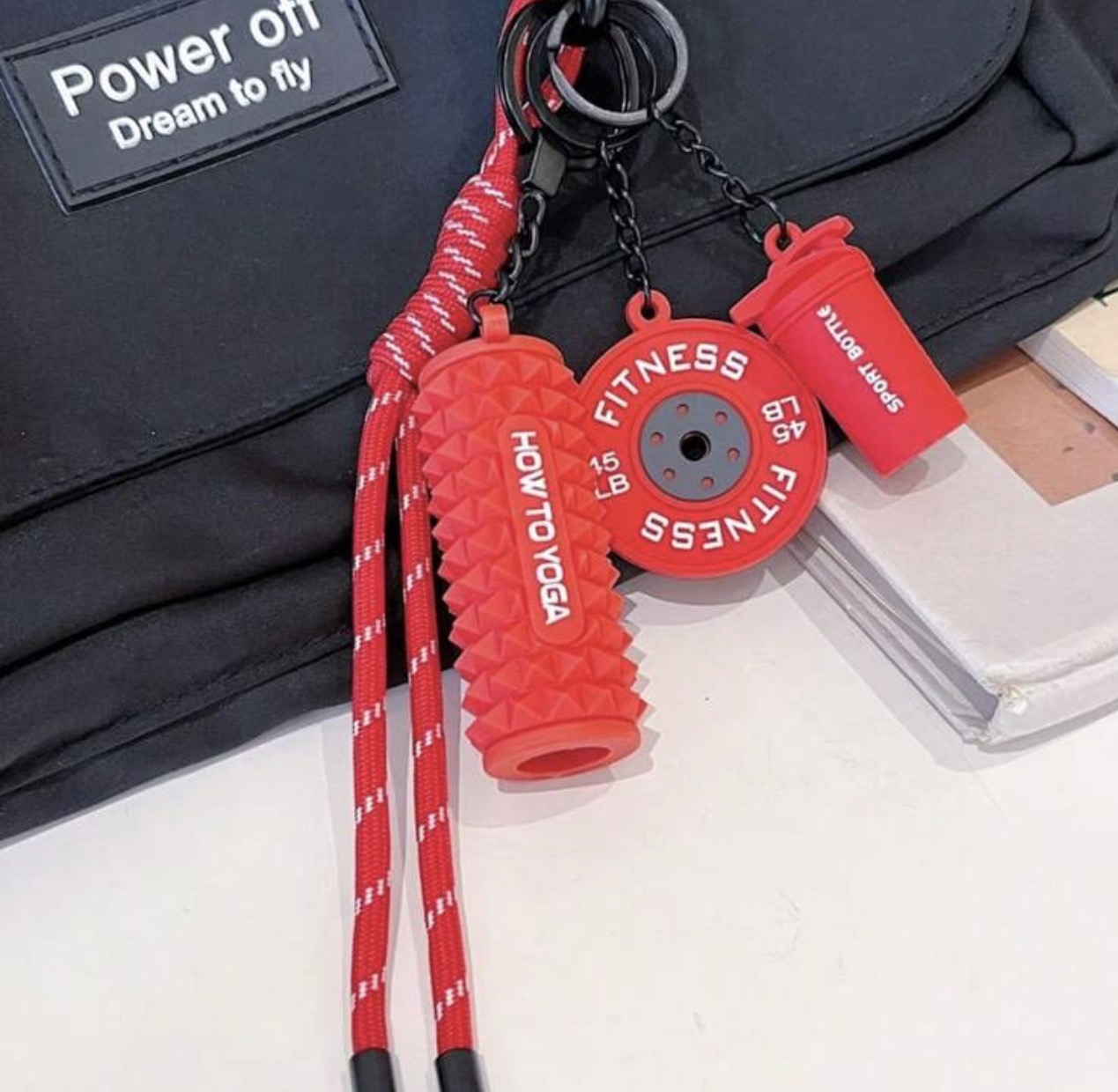 مشخصات محصول: آویز کیف و جاکلیدی فیتنس طرح دمبل و لوازم ورزشی