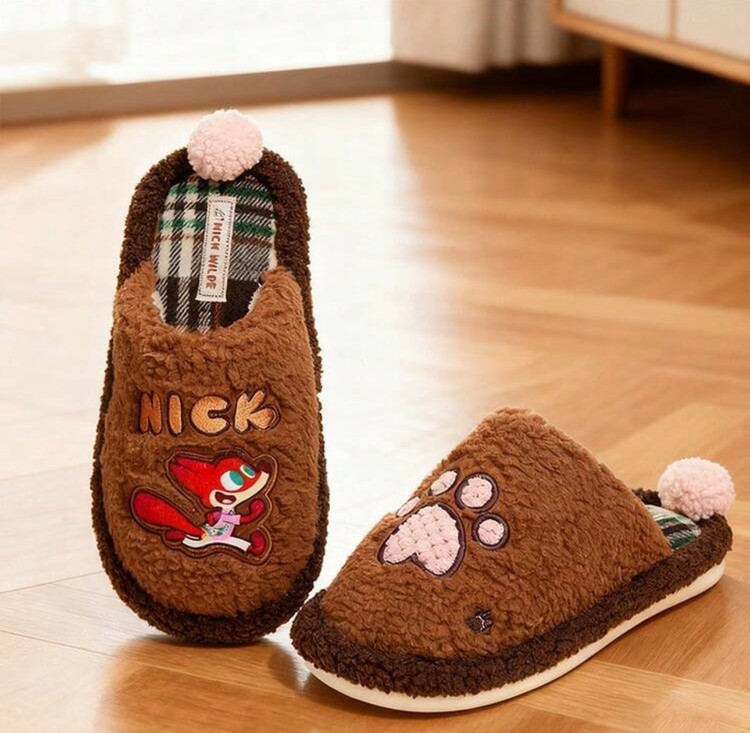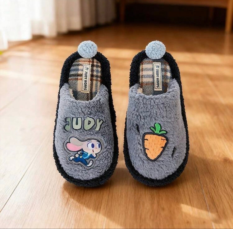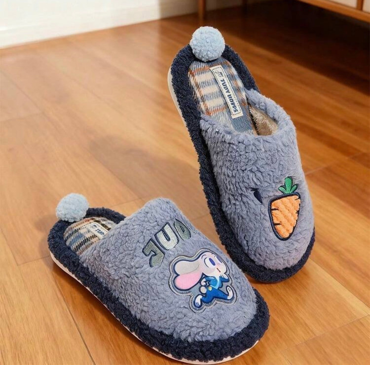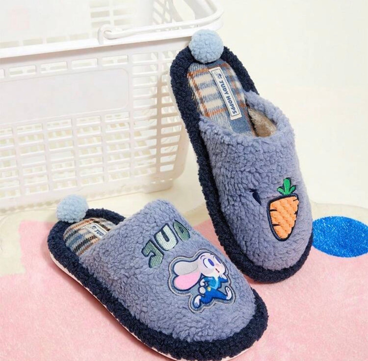 Miniso Zootopia Judy Themed Checkered Slippers, Heavyweight Teddy Fleece