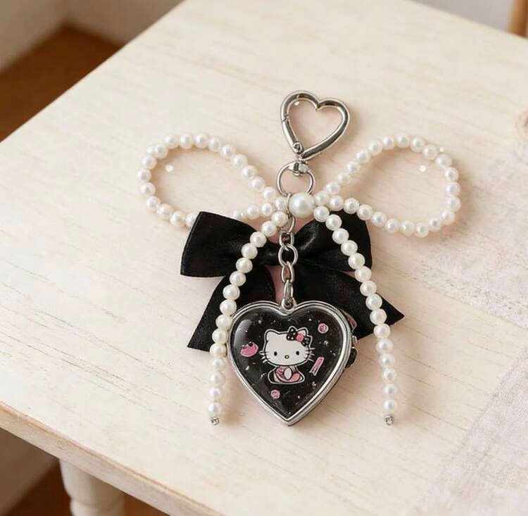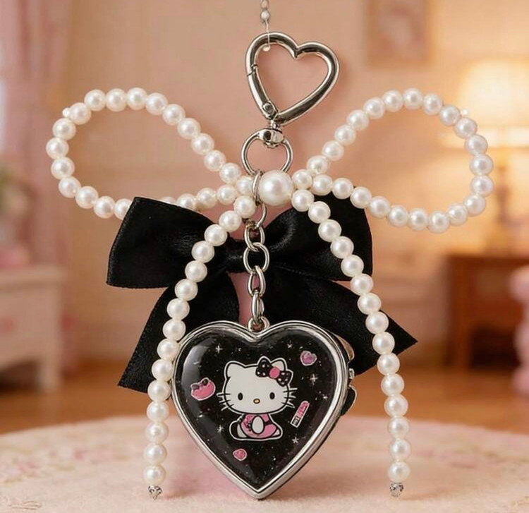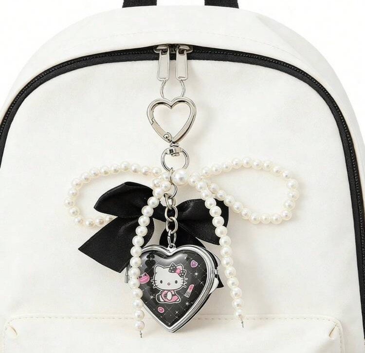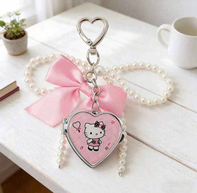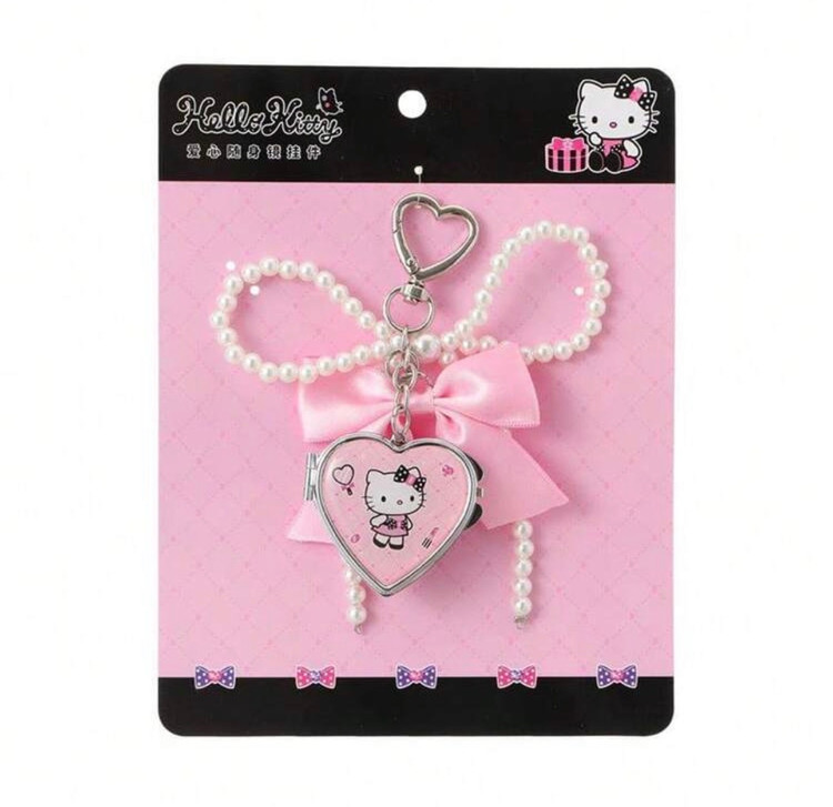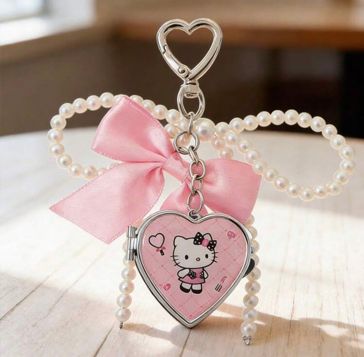 آویز کیف/آینه جیبی فلزی قلبی هلو کیتی