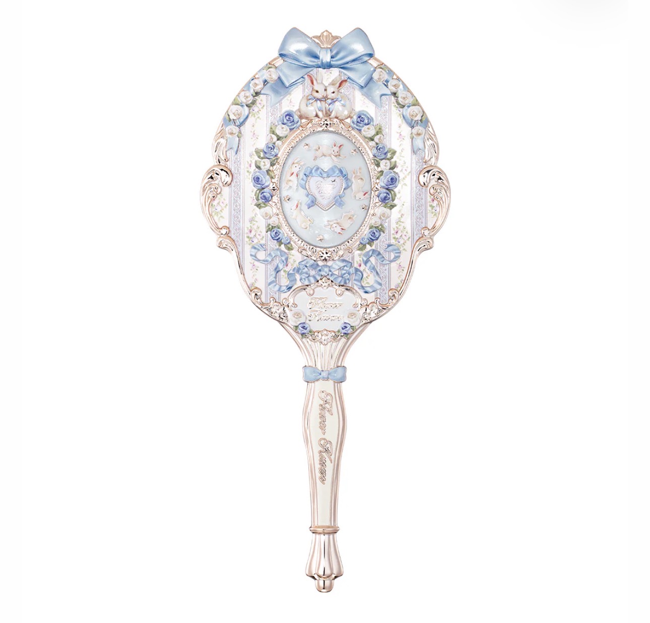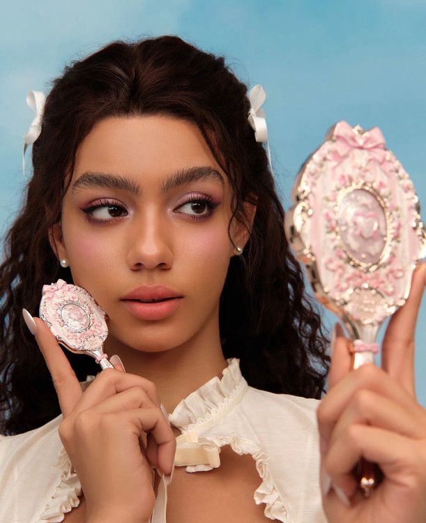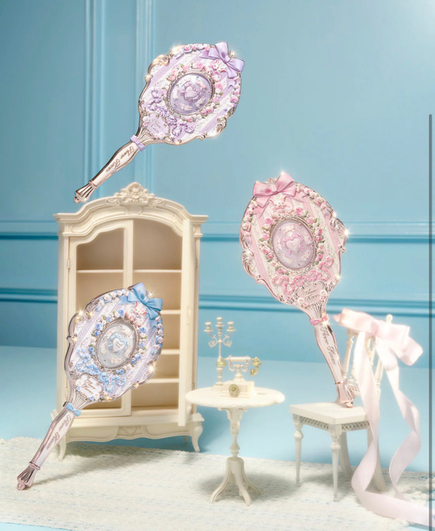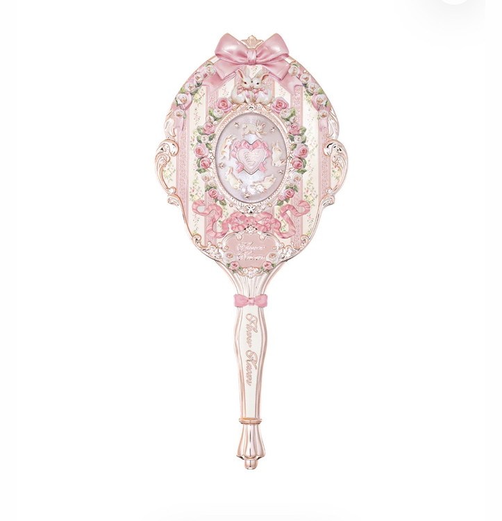 این آینه دستی با الهام از دیوارهای گلدار فرانسوی، فضایی رمانتیک و لطیف را به تصویر میکشد. خرگوشهای سفید بازیگوش در میان باغی بهاری جان گرفتهاند و جزئیات آبکاریشده طلایی، جلوهای درخشان و لوکس به محصول میبخشد. طراحی کلی برگرفته از سبک رمانتیک و ظریف Rococo فرانسوی است.