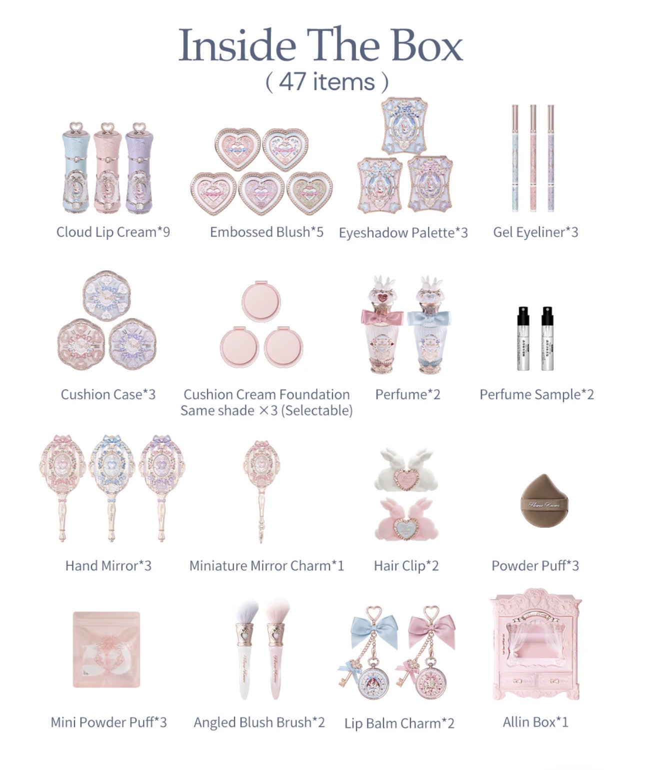 - این مجموعه هدیه از برند Flower Knows طراحی شده و الهامگرفته از کمد کلاسیک فرانسوی و سبک وینتیج است.