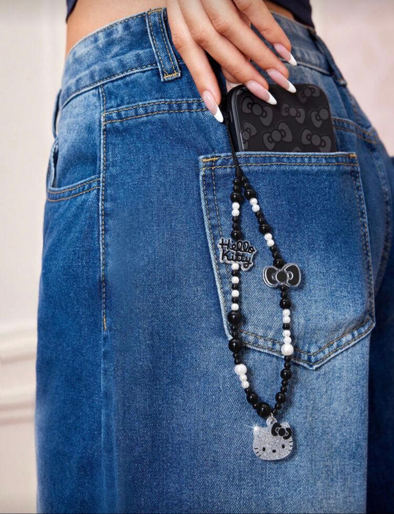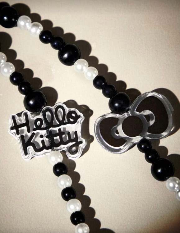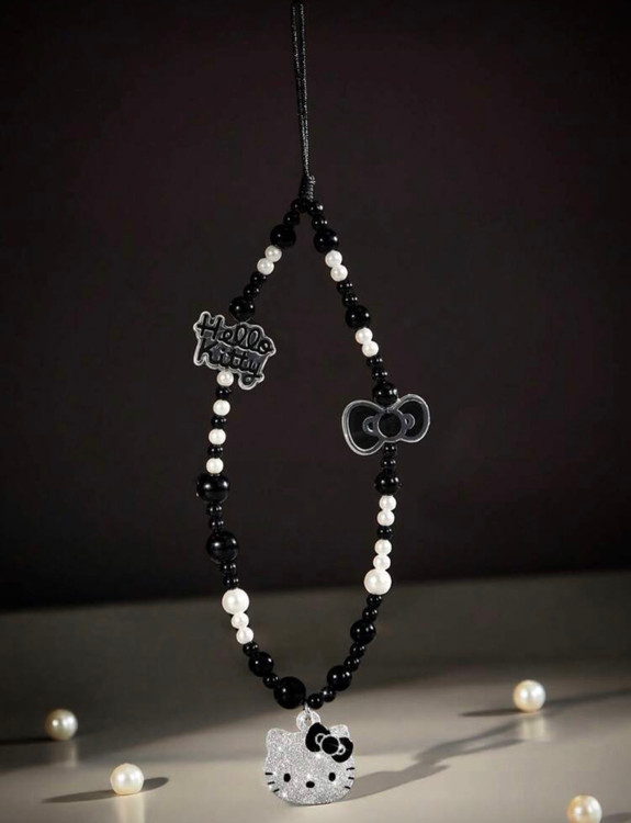 بند موبایل فانتزی هلو کیتی و دوستان | SHEIN – مرواریدی پاپیونی مشکی وسفید