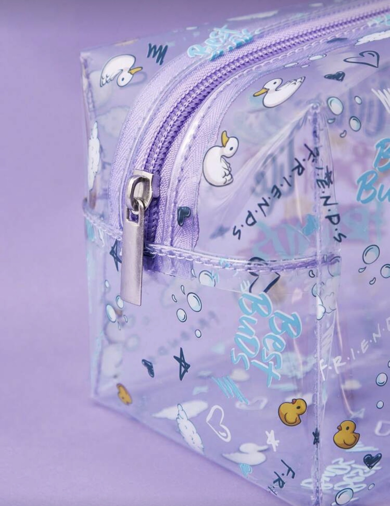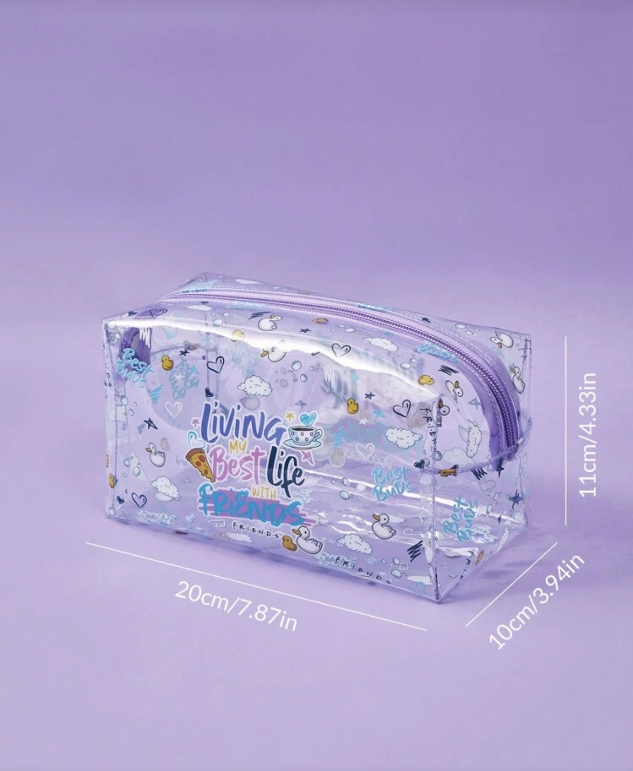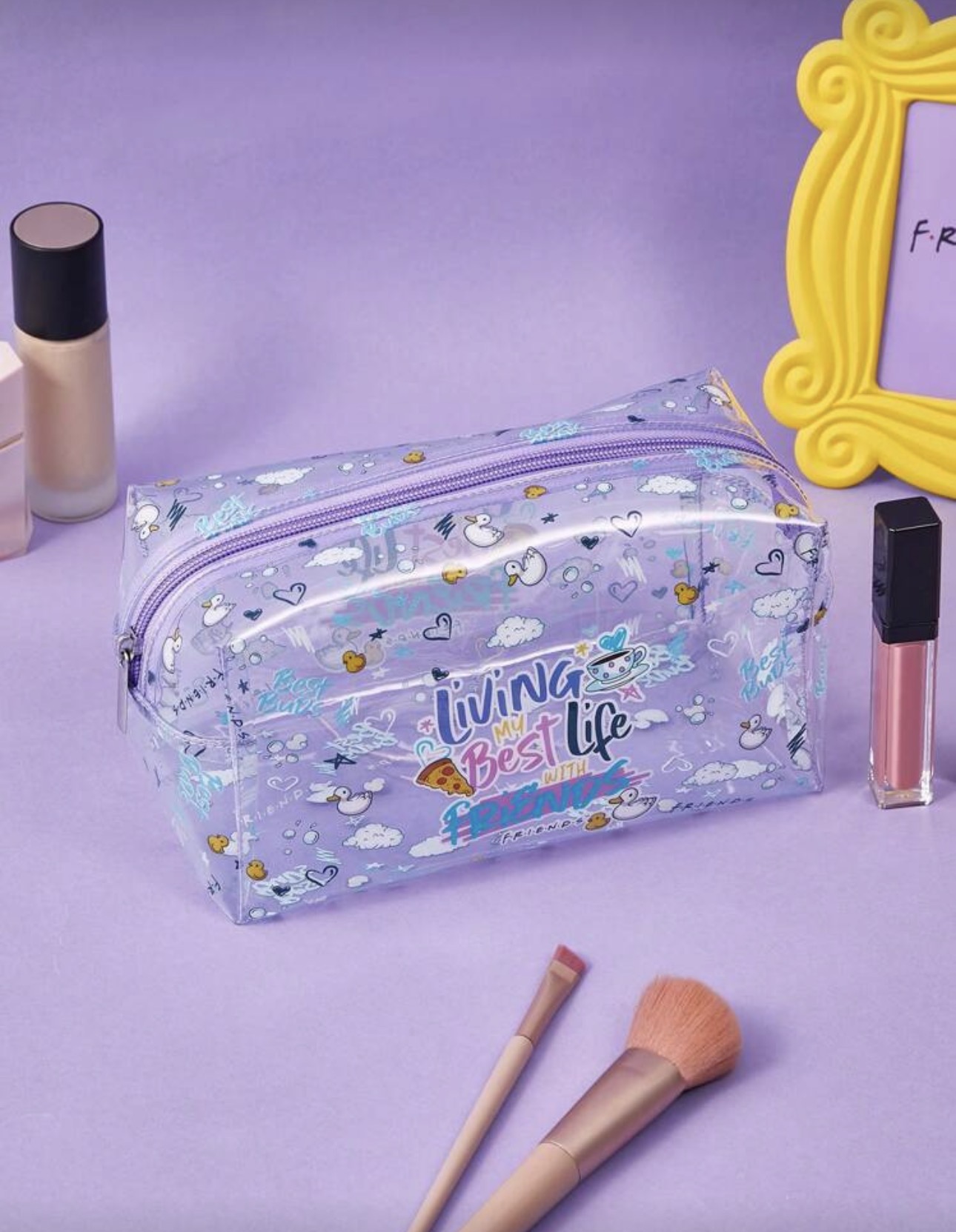 نام محصول: کیف آرایشی شفاف بنفش FRIENDS برند: FRIENDS × SHEIN نوع محصول: کیف آرایشی / کیف چندمنظوره جنس: PVC شفاف رنگ: بنفش شفاف طرح: لوگو و تم سریال Friends نوع بسته شدن: زیپ ظرفیت: مناسب برای نگهداری لوازم آرایشی و وسایل کوچک ویژگیها طراحی فانتزی با تم سریال Friends بدنه شفاف برای دسترسی سریع به محتویات سبک و قابل حمل مناسب استفاده روزمره و سفر مناسب نوجوانان و خانمها