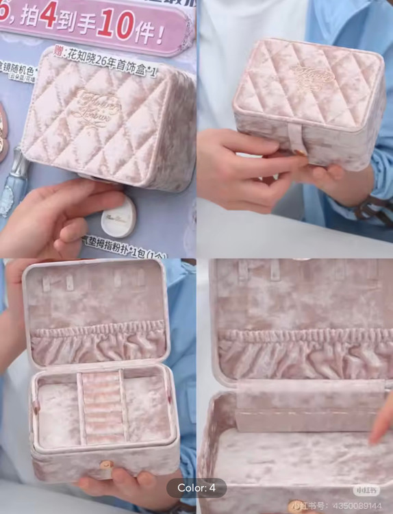 جعبه جواهرات مخملی صورتی طرح لوزی (Flower Knowledge)