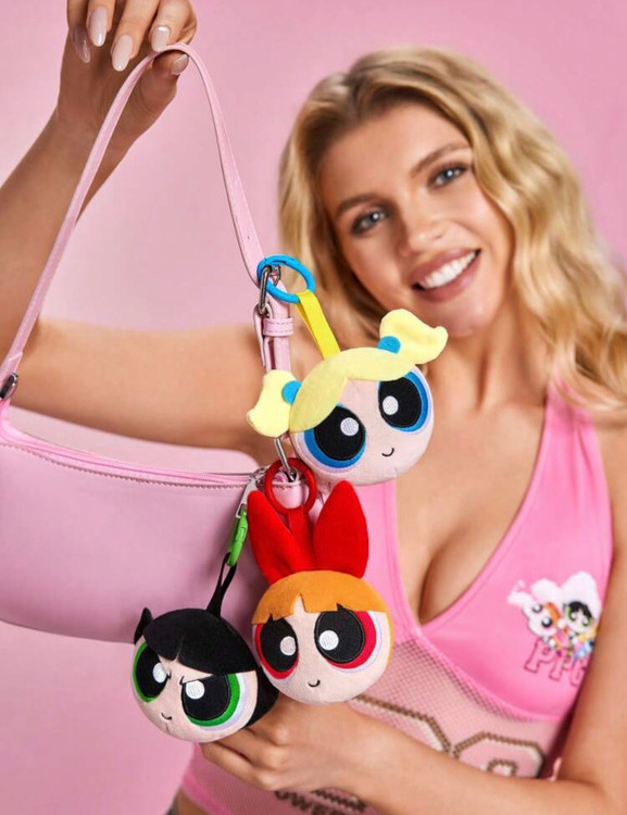 THE POWERPUFF GIRLS X SHEIN 1pc Cute Plush Policewoman Keychain With A Big