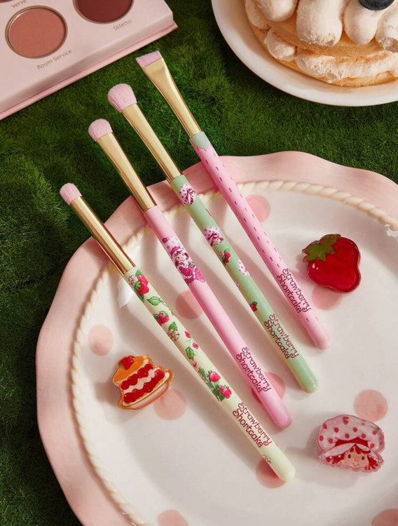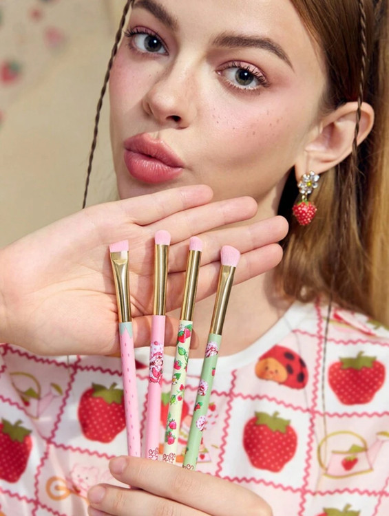 Strawberry Shortcake X SHEIN 🍓✨ ست ۴ عددی براش آرایشی چشم با طرح کارتونی و توتفرنگی 🎀💖 طراحی زیبا با جزئیات گیپور و دستههای فانتزی ✨💕 ایدهآل برای میکاپ حرفهای و روزانه 💄👀