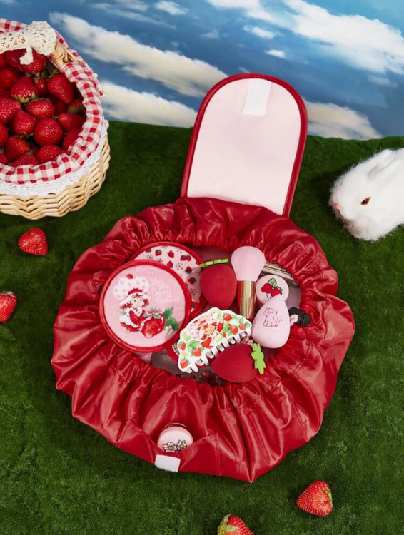 کیف لوازم آرایش با طرح کارتونی و توتفرنگی 🎀💖 سبک، جادار و مناسب برای حمل لوازم آرایشی 💄👜 ایدهآل برای استایلهای فانتزی و دخترانه ✨💕