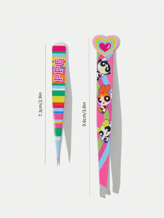 ست ۲ عددی موچین طرح کارتونی Powerpuff Girls X SHEIN ✨ با طراحی Blossom 🌸، Bubbles 💙 و Buttercup 💚 برای ابروهایی مرتب و خوشحالت!