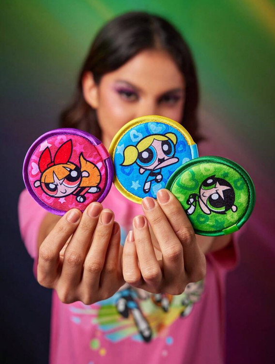 ست ۳ عددی پد پاککننده آرایش قلبی طرح Powerpuff Girls X SHEIN ✨ با طراحی Blossom 🌸، Bubbles 💙 و Buttercup 💚 برای پاکسازی ملایم و مؤثر!