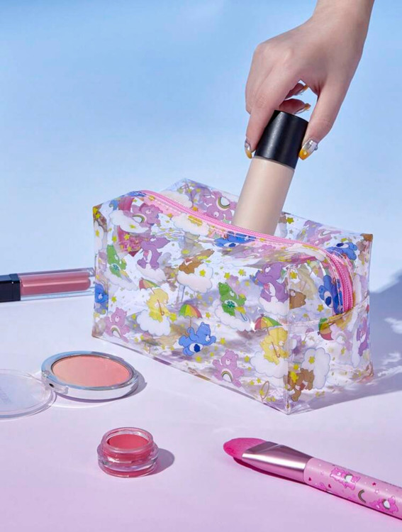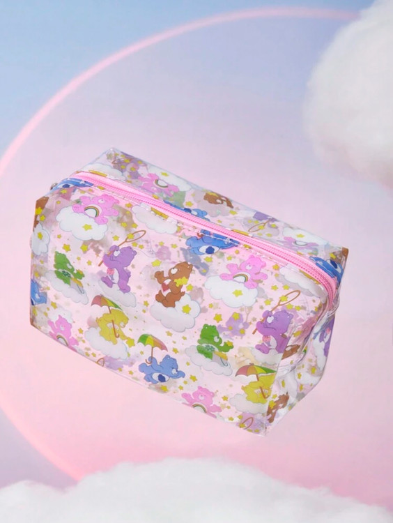 کیف آرایشی شفاف بزرگ با طراحی کارتونی Care Bears SHEIN X Care Bears ✨ شامل شخصیتهای Cheer Bear 🌟، Grumpy Bear 😠، Good Luck Bear 🍀، Share Bear 💖 و Funshine Bear 🌞، ایدهآل برای نگهداری مرتب لوازم آرایشی!