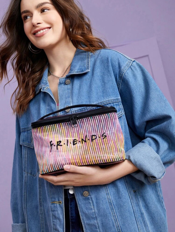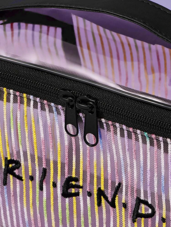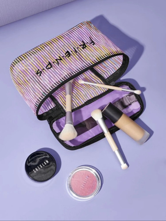 کیف آرایشی گلدوزی شده FRIENDS X SHEIN – کیف چندکاره مشبک شفاف ✨👜