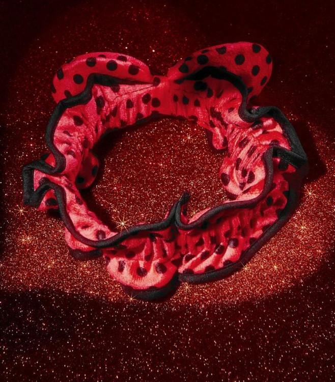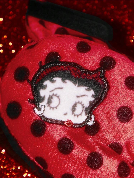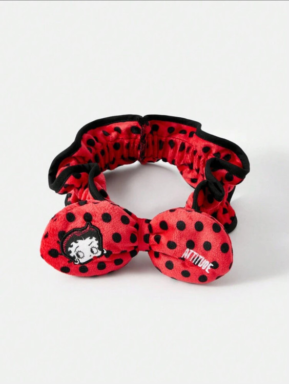 کش مو پشمی طرح خالخالی با گلدوزی حروف و پاپیون Betty Boop x SHEIN 🎀✨