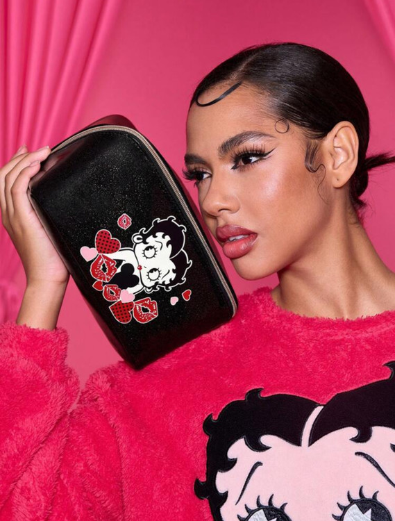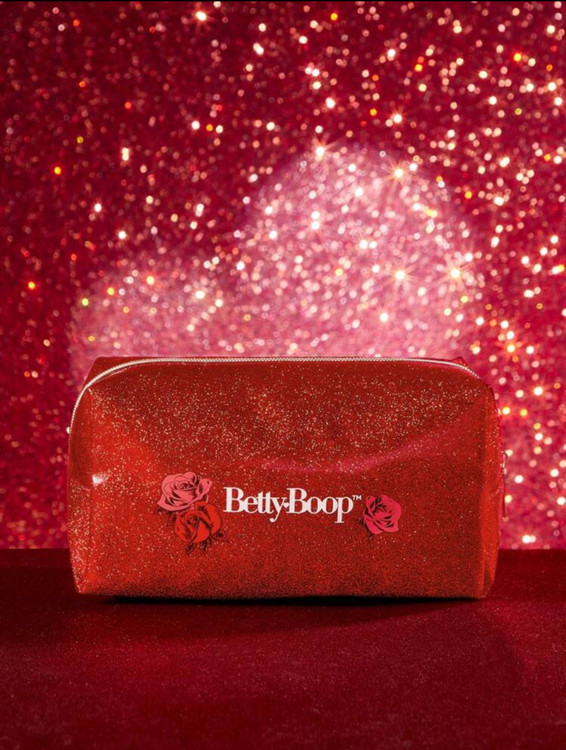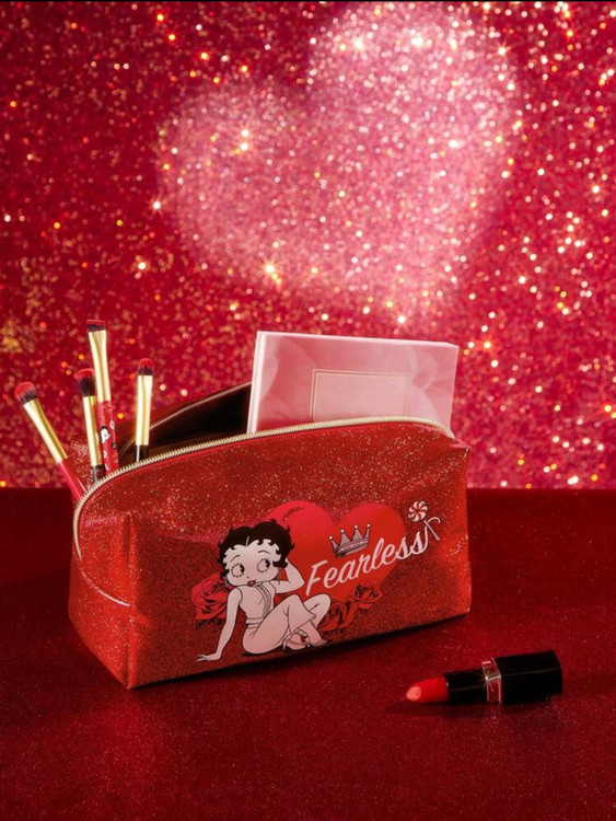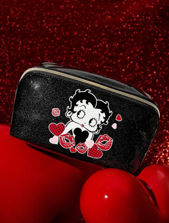 کیف آرایشی بزرگ مربعی با طرح کارتونی و چاپ قلب و حروف Betty Boop x SHEIN ✨