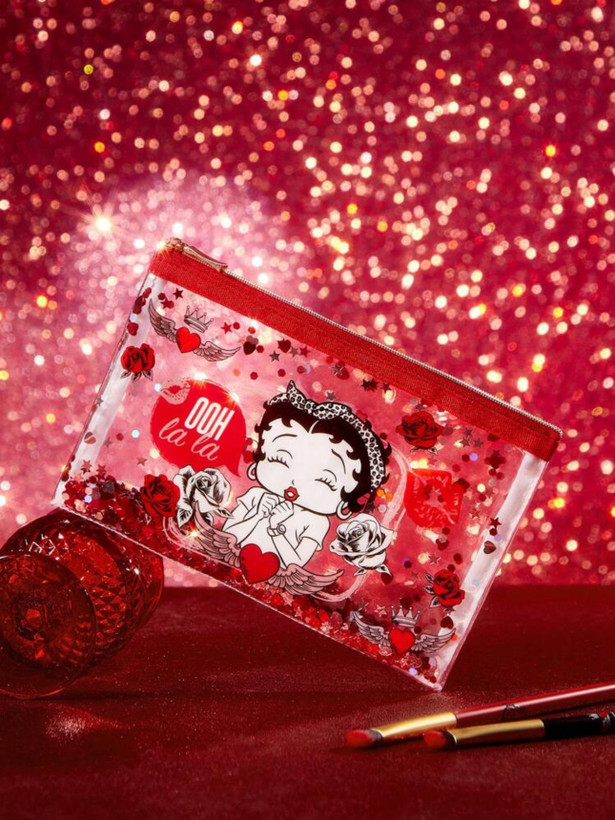 کیف لوازم آرایش شفاف Betty Boop x SHEIN با طرح کارتونی و گل رز ✨🌹