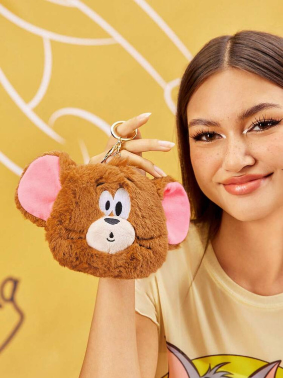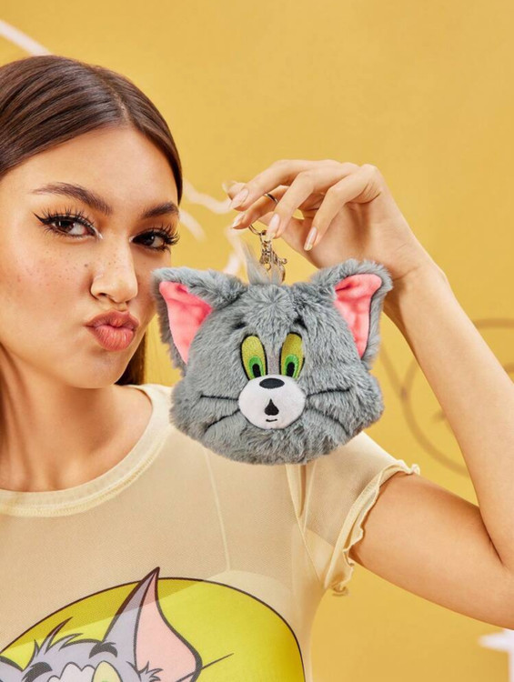 کیف آویز مخملی فوق نرم با گلدوزی طرح گربه طرح تام و جری