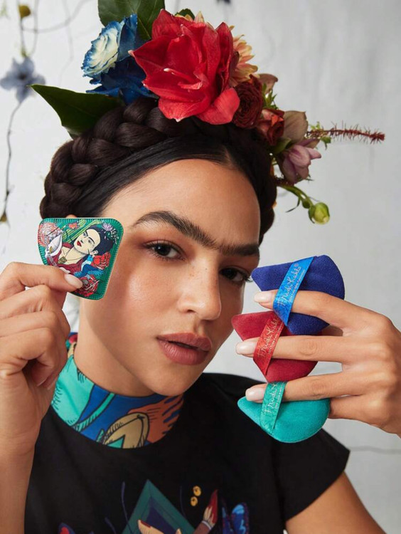 ست ۴ عددی پاف پودر مثلثی Frida Kahlo x SHEIN با چاپ شخصیت و گل 🪶🌸