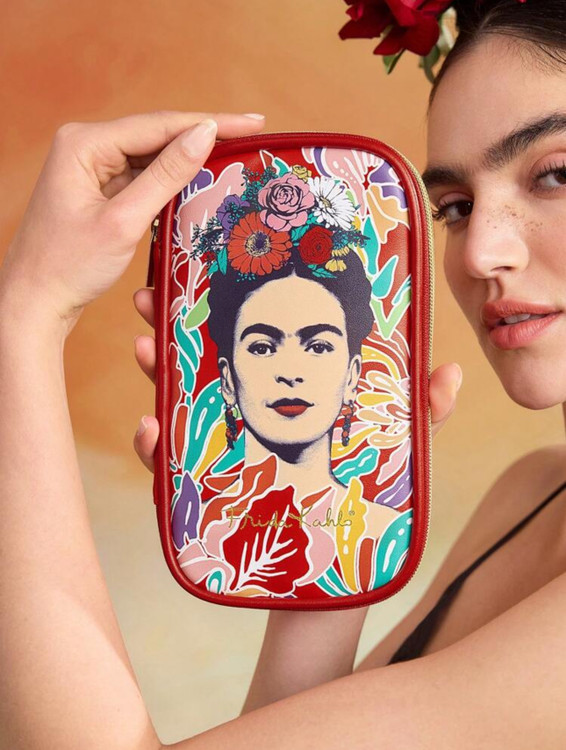 کیف لوازم آرایش زیپدار Frida Kahlo x SHEIN با طرح گل و شخصیت 🌸🎨