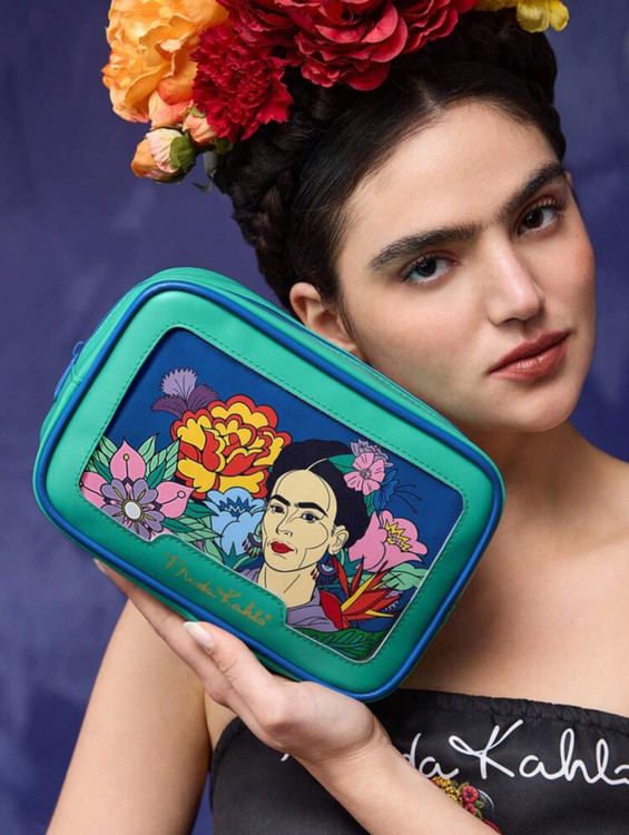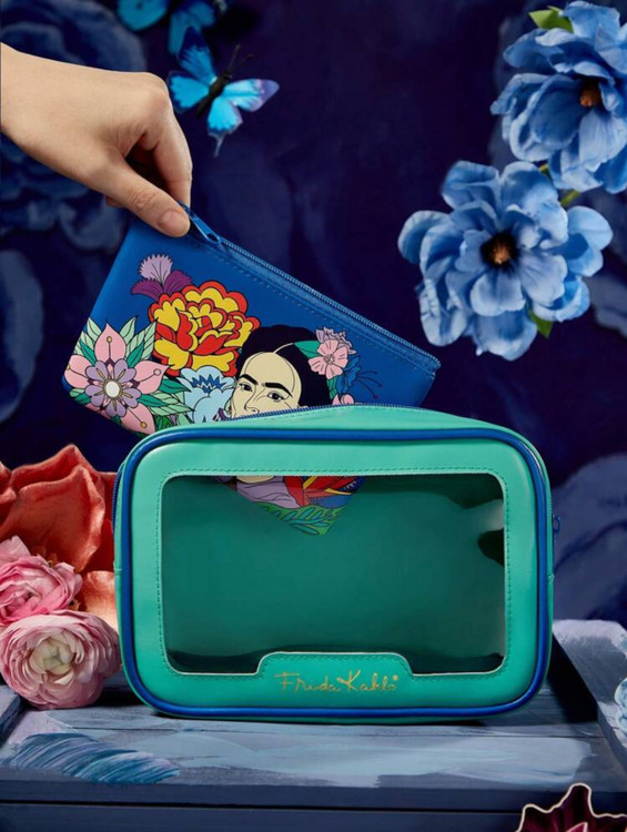 ست ۲ عددی کیف لوازم آرایش زیپدار Frida Kahlo x SHEIN با طرح شخصیت و گل 🌸🎨