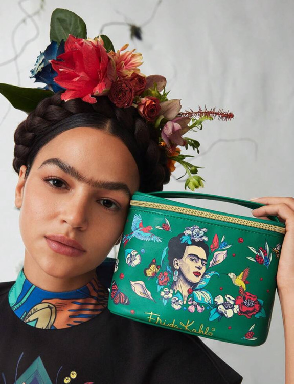 کیف لوازم آرایش مکعبی Frida Kahlo x SHEIN با چاپ شخصیت و گلهای گیاهی 🌸🎨