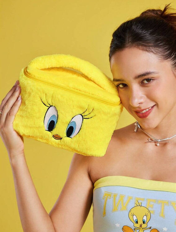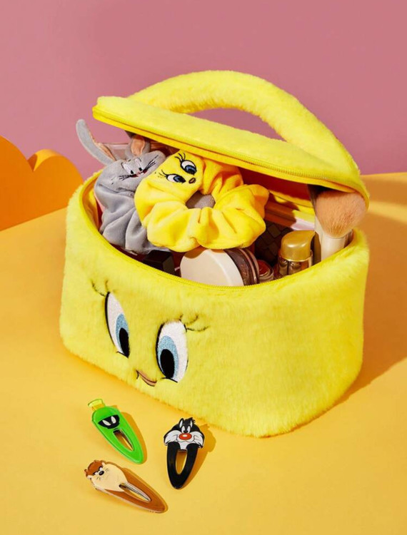 کیف لوازم آرایش پشمی LOONEY TUNES x SHEIN با گلدوزی Tweety 🐤🎀