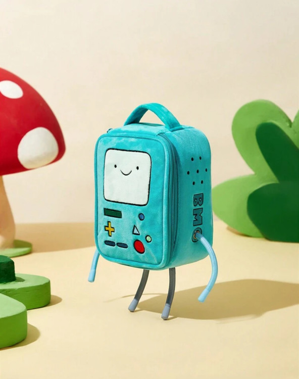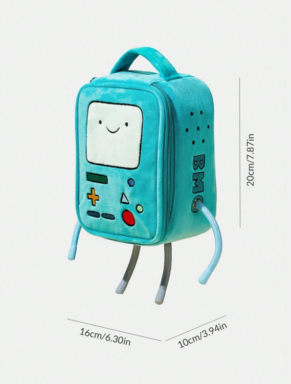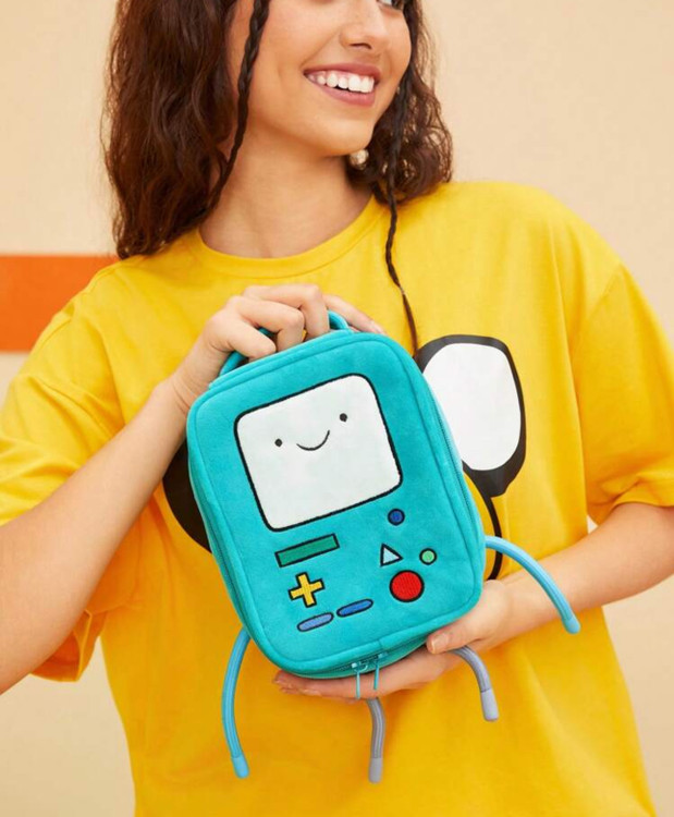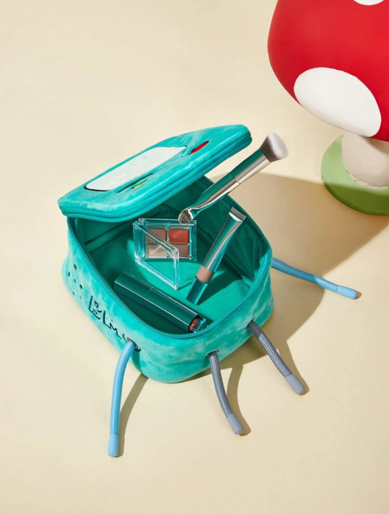 کیف لوازم آرایش دستی نامتقارن ADVENTURE TIME x SHEIN با گرافیک کارتونی رنگ آبی دریاچه 🌊✨