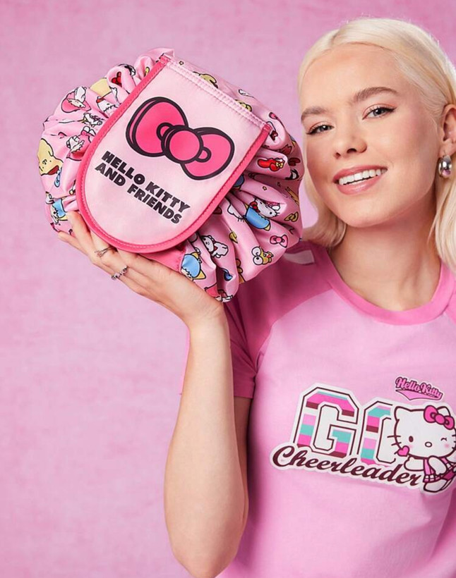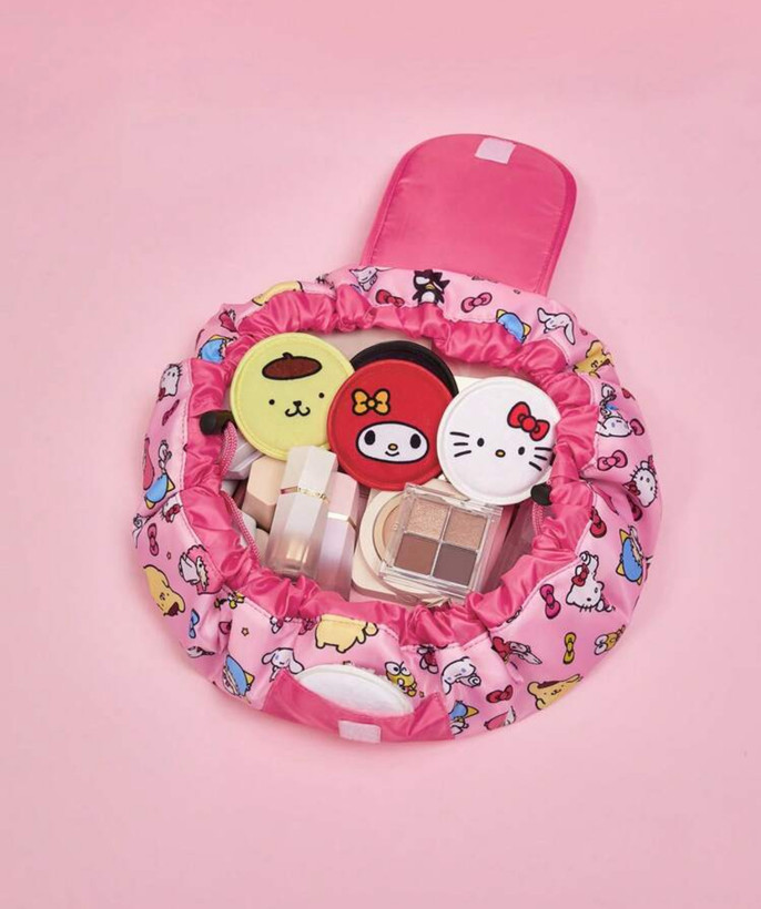 کیف لوازم آرایش کشی Hello Kitty x SHEIN با چاپ کارتونی و نوشته به رنگ صورتی 🎀💖