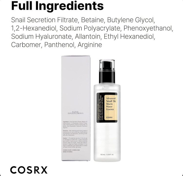 ✅ آبرسانی و حفظ رطوبت: با داشتن 96٪ موسین حلزون، پوست را عمیقاً مرطوب کرده و از خشکی و کمآبی جلوگیری میکند.