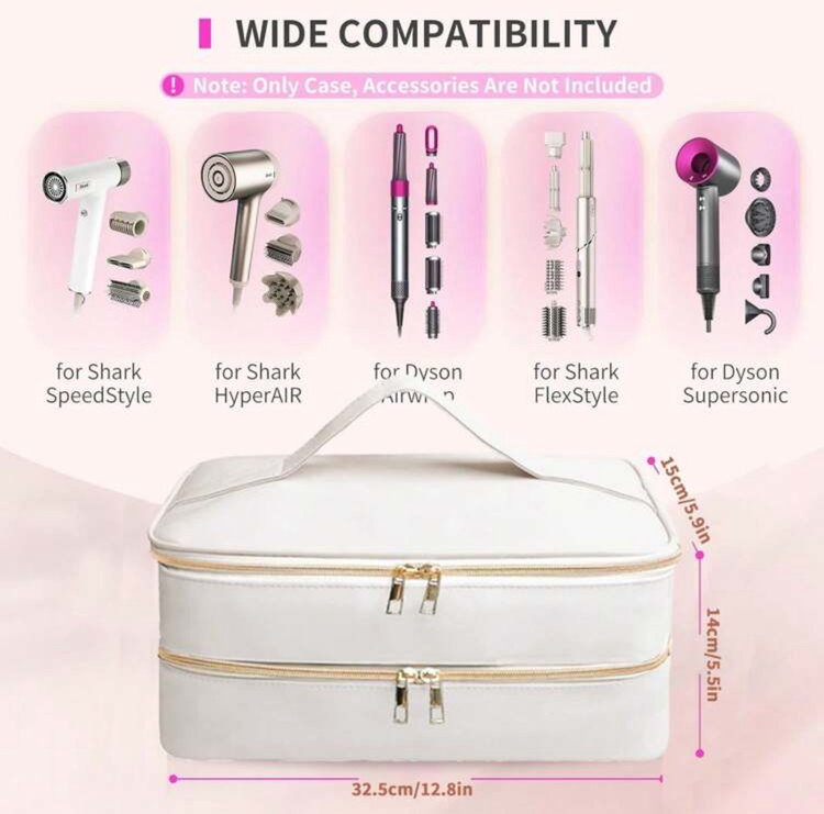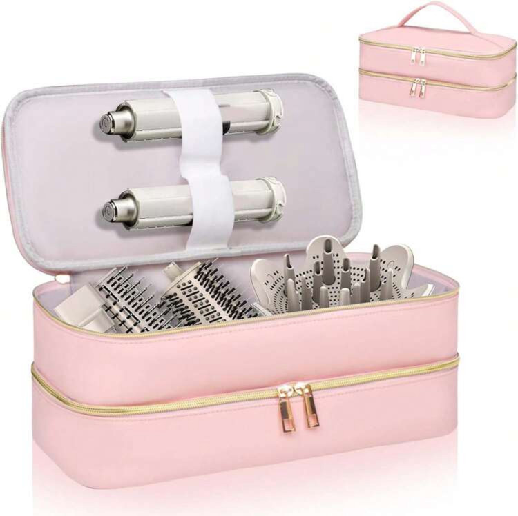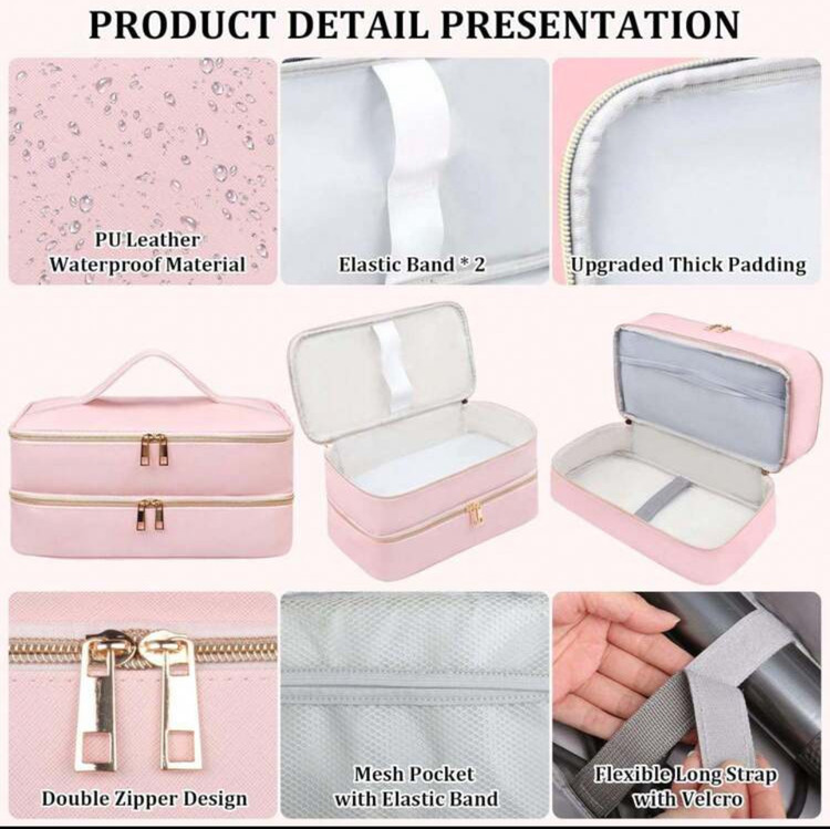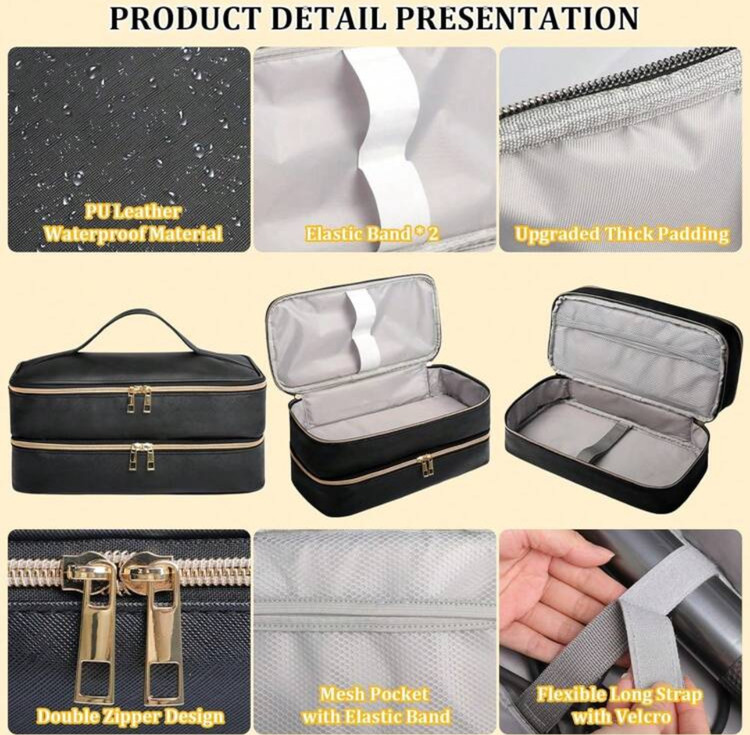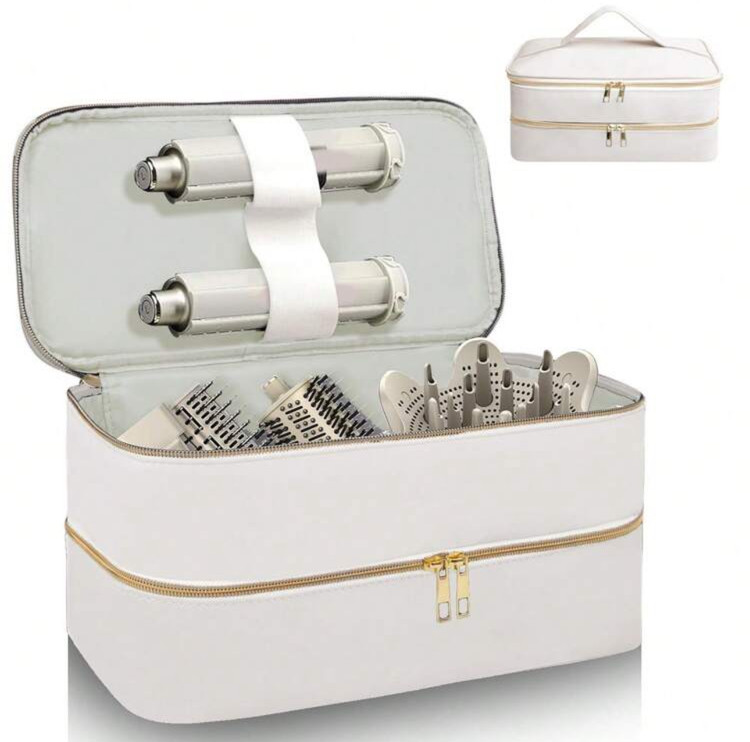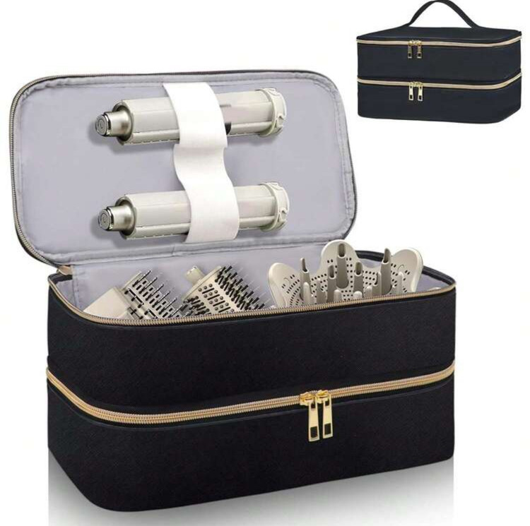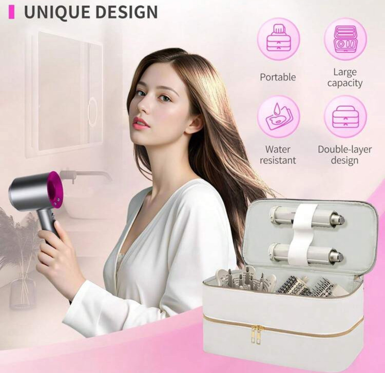 کیف سفر ابزار آرایش مو دو طبقه – شامل کیف خشککن مو و محفظههای جداگانه برای ابزار آرایشی